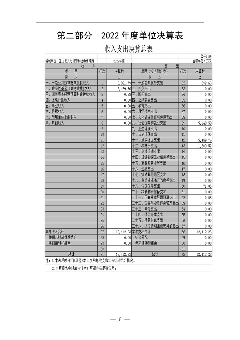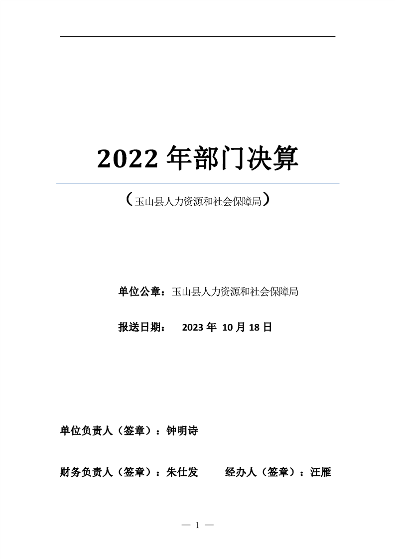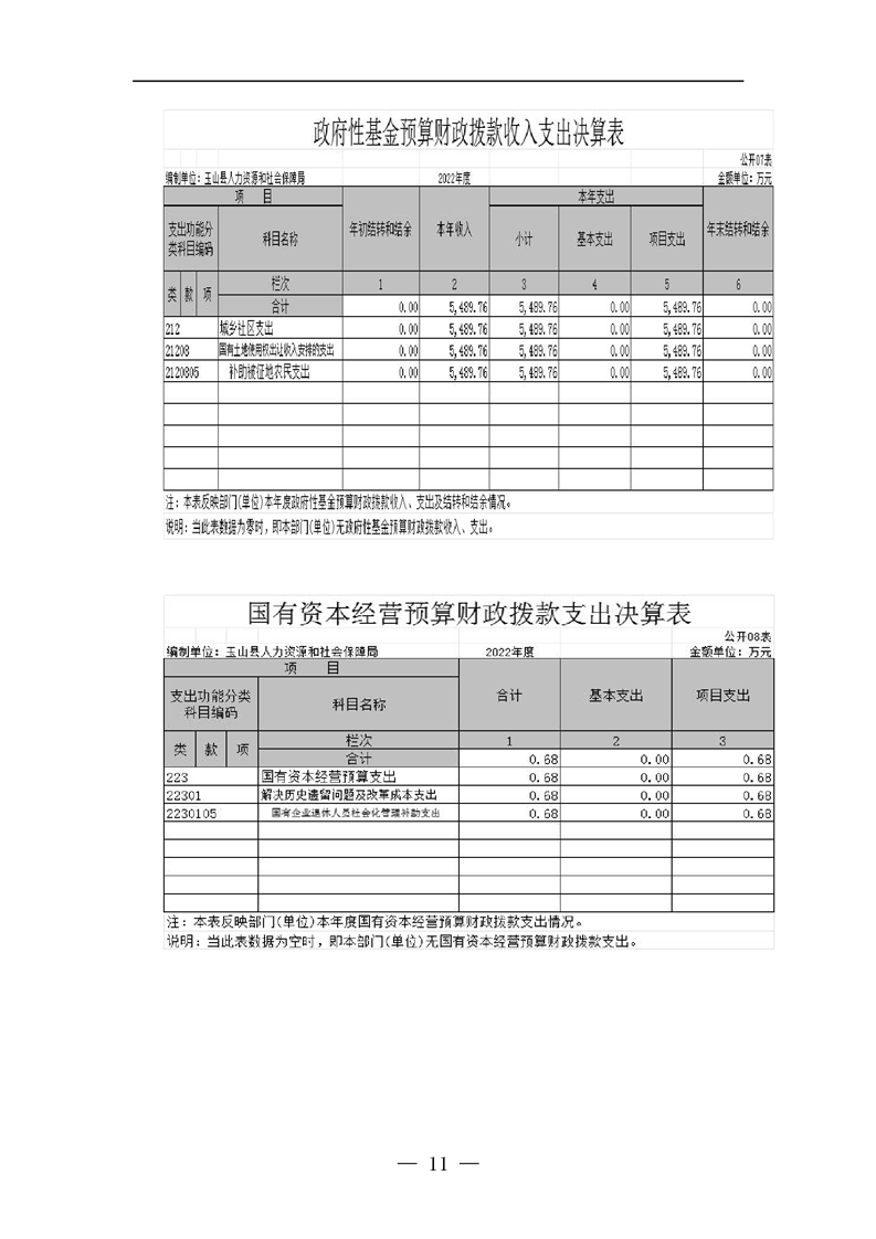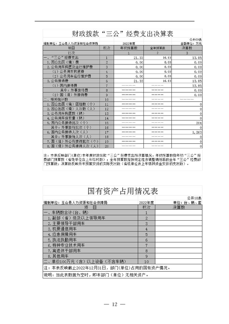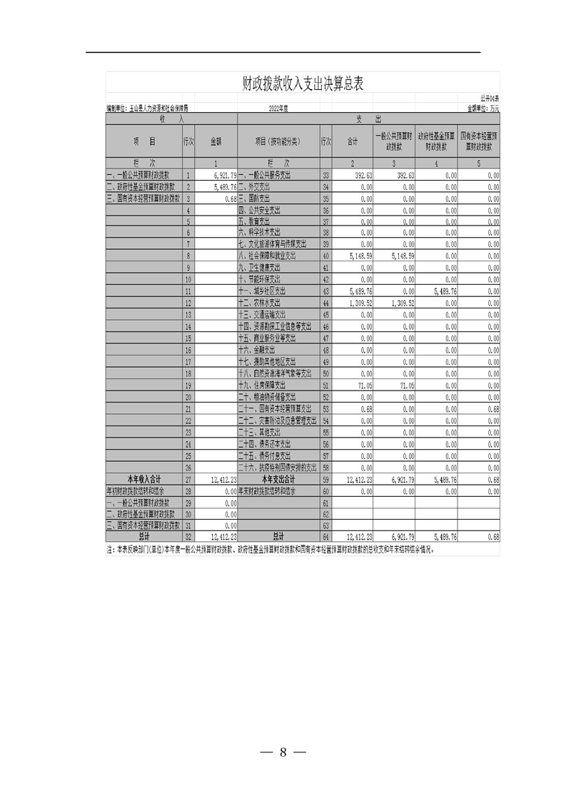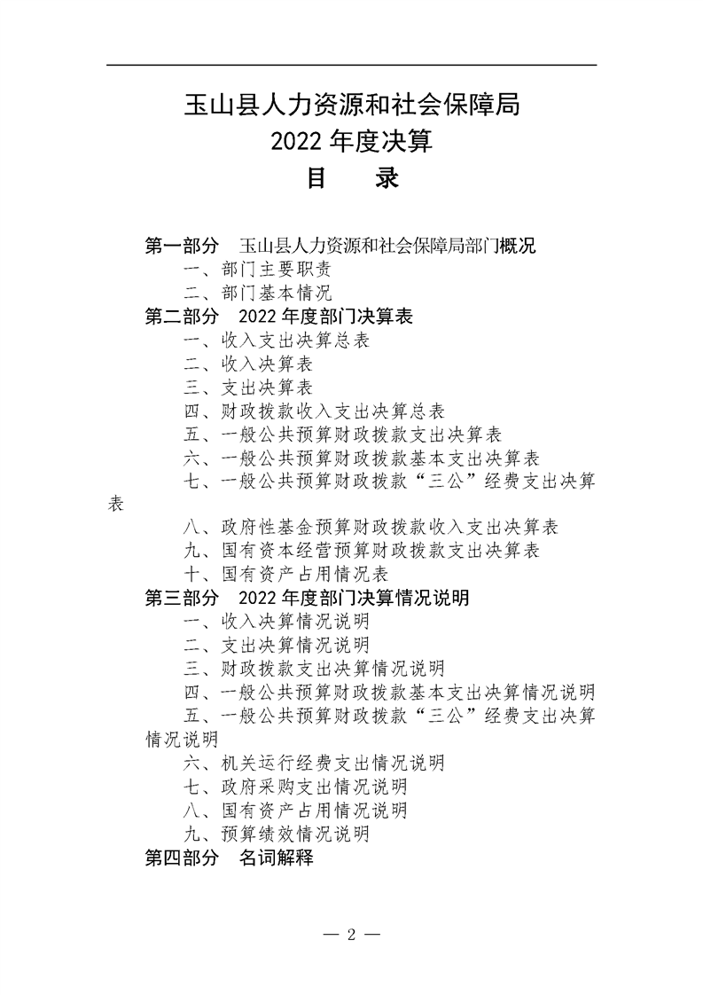 2022年度玉山縣人社局部門決算公開