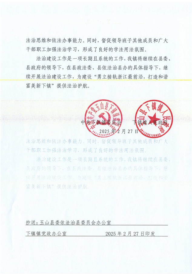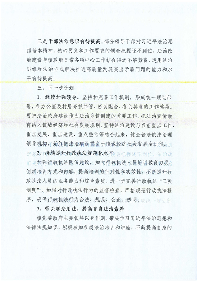關(guān)于2024年度下鎮(zhèn)鎮(zhèn)法治政府建設(shè)情況的報(bào)告