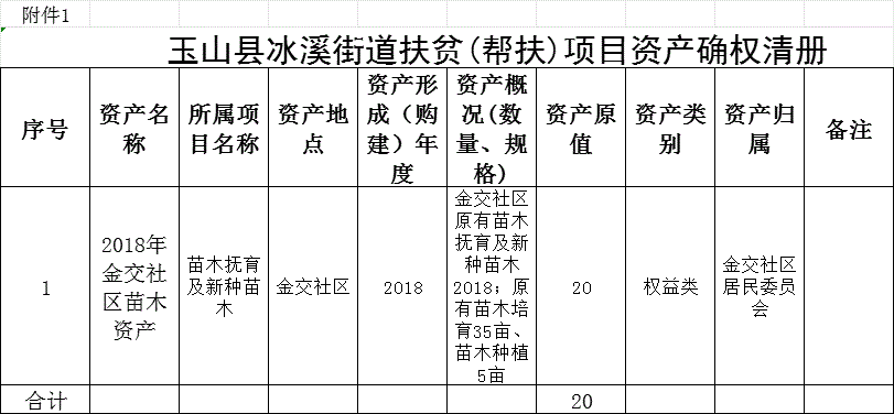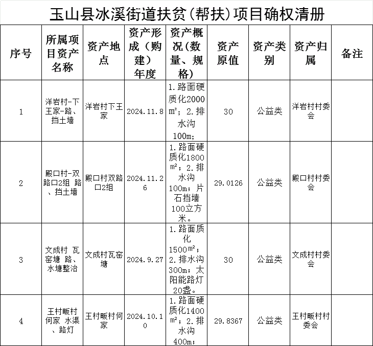 1.玉山縣冰溪街道扶貧(幫扶)項目資產確權清冊(經營性、公益性、到戶類資產)