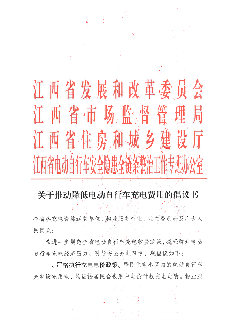 關(guān)于推動(dòng)降低電動(dòng)自行車(chē)充電費(fèi)用的倡議書(shū)
