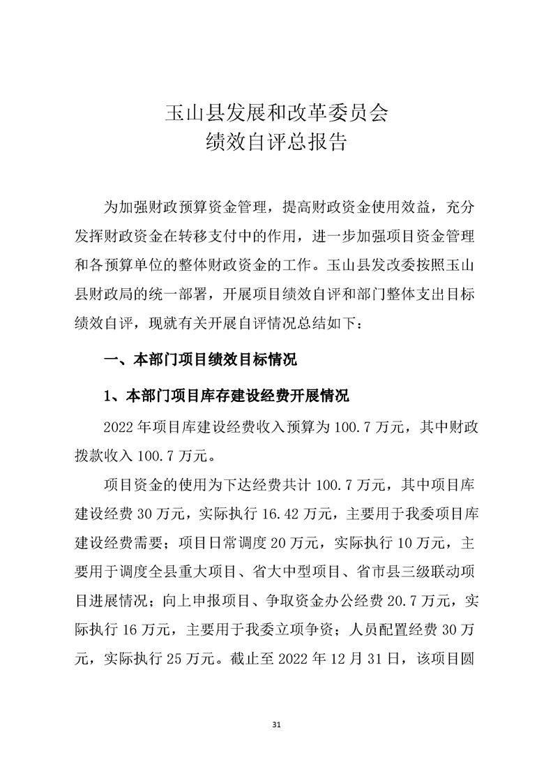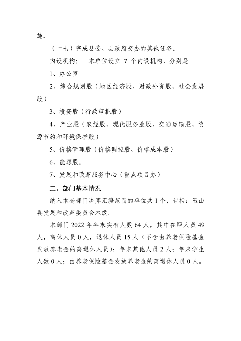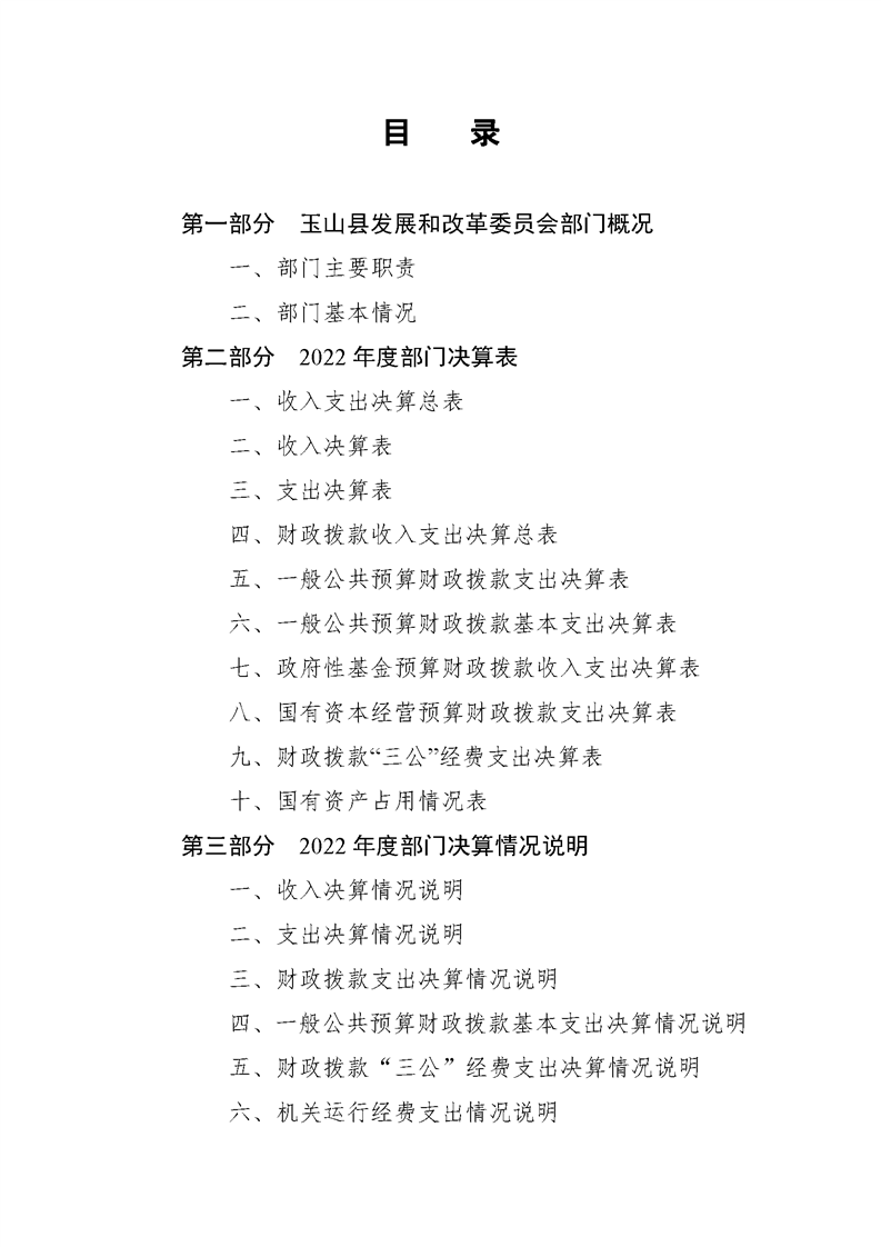 玉山縣發展和改革委員會2022年部門決算公開報告