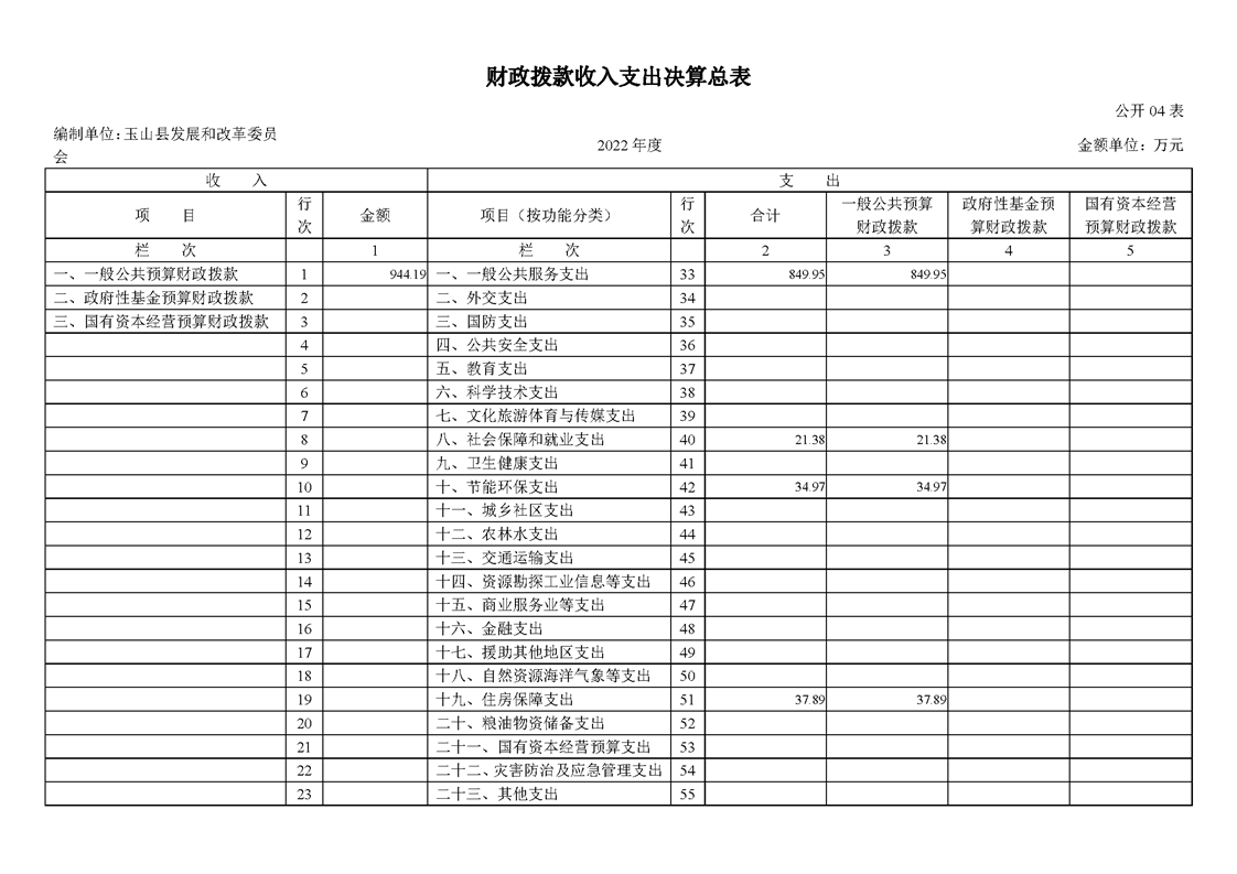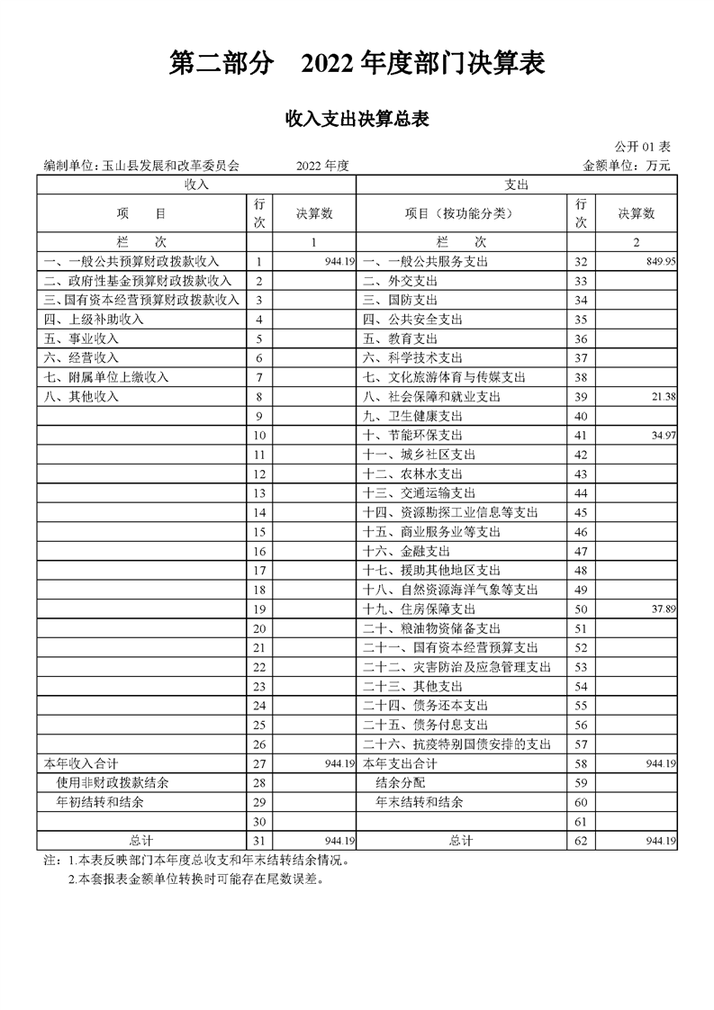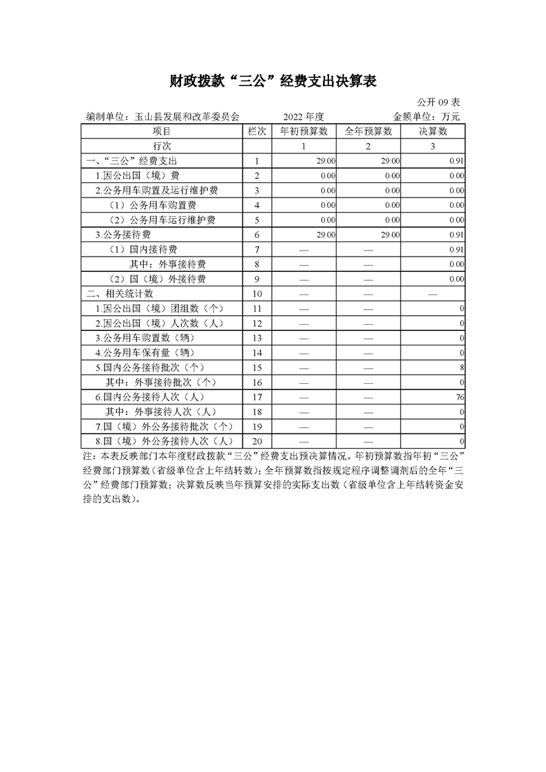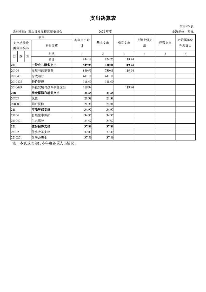 玉山縣發展和改革委員會2022年部門決算公開報告