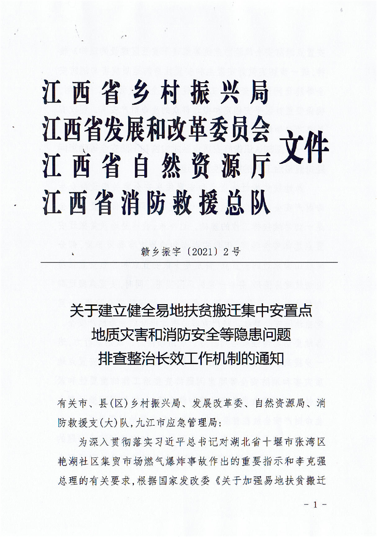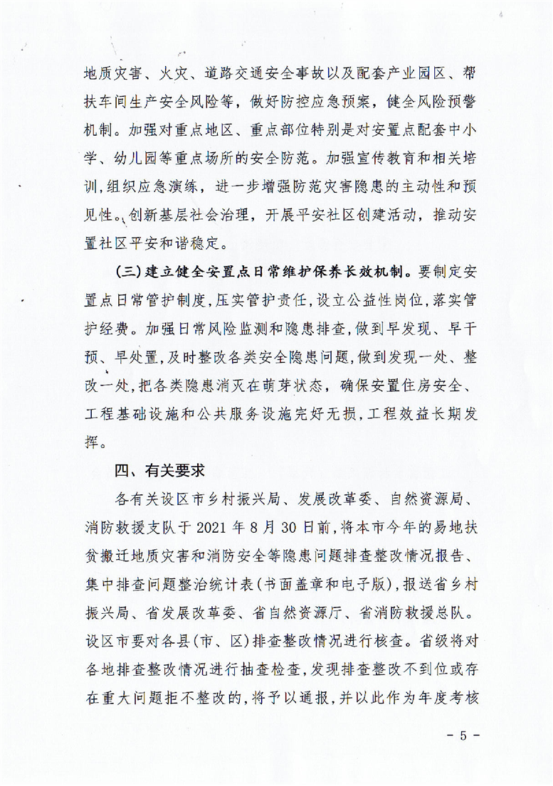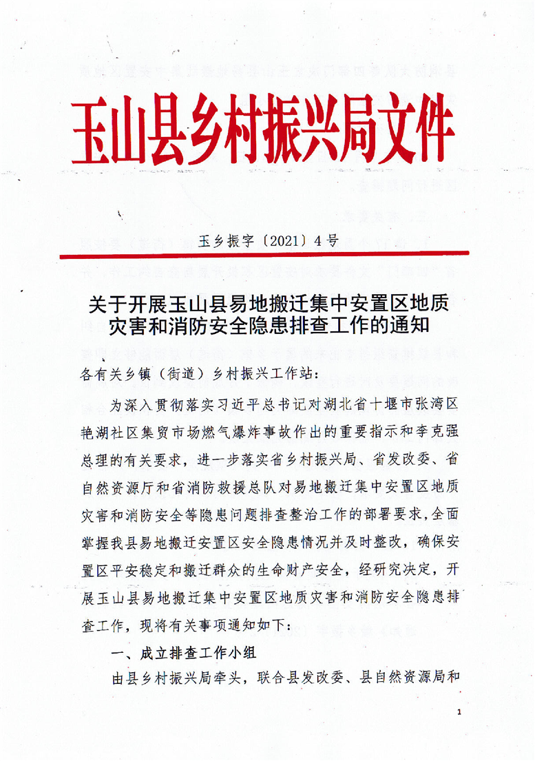 玉山縣鄉(xiāng)村振興局印發(fā)《關于開展玉山縣易地搬遷集中安置區(qū)地質災害和消防安全隱患排查工作的通知》