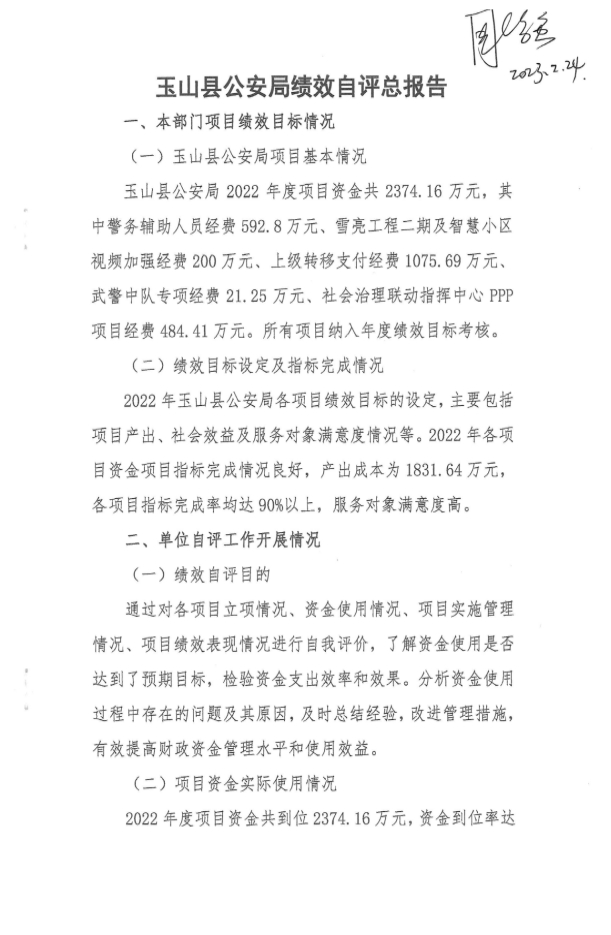 第二部分 ?玉山縣公安局2022年部門預算情況說明