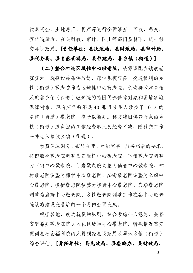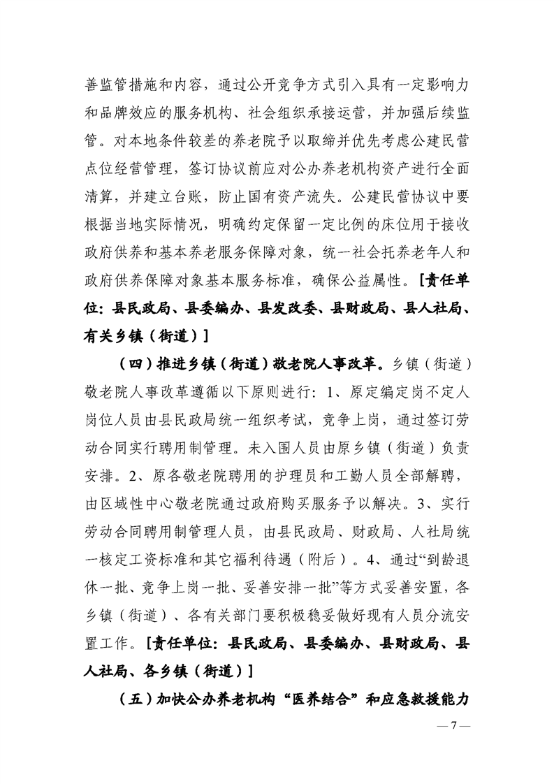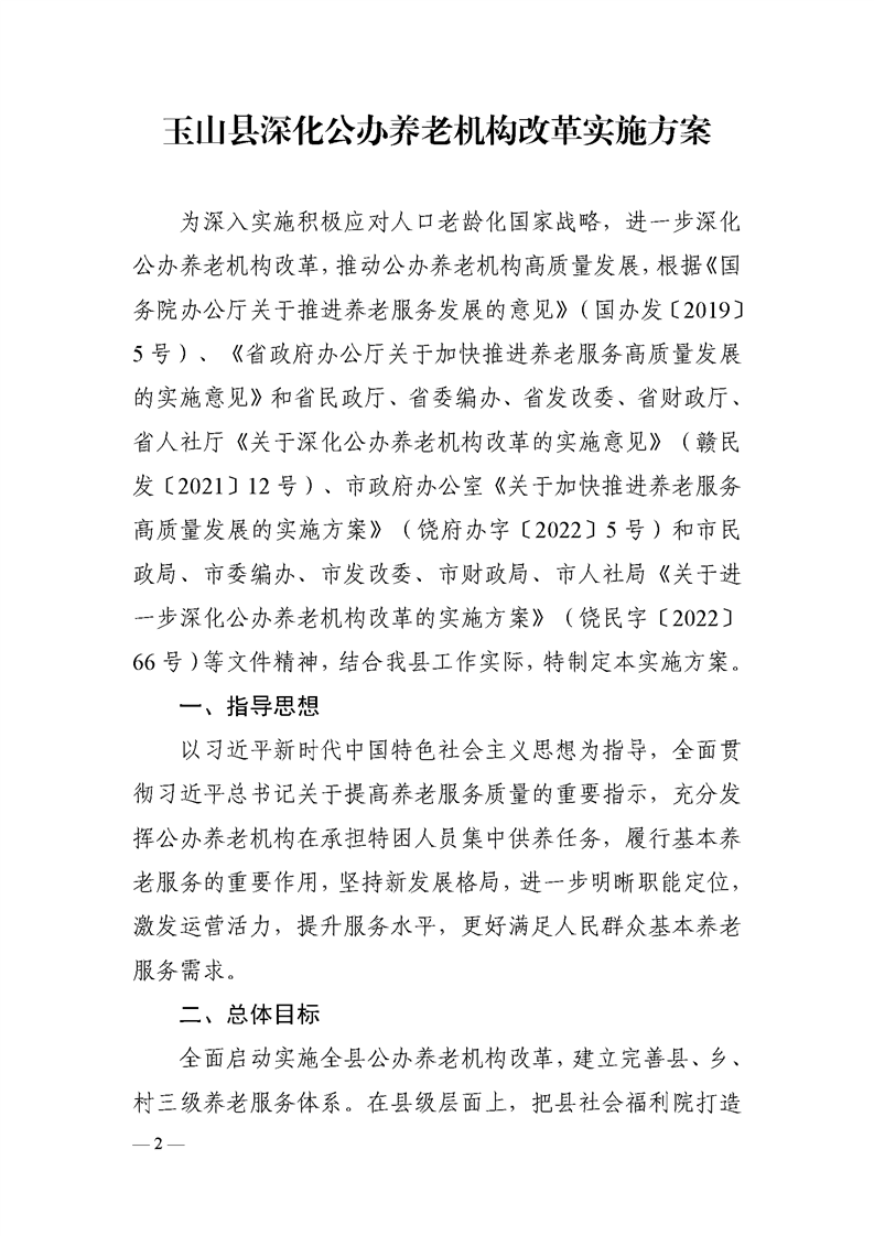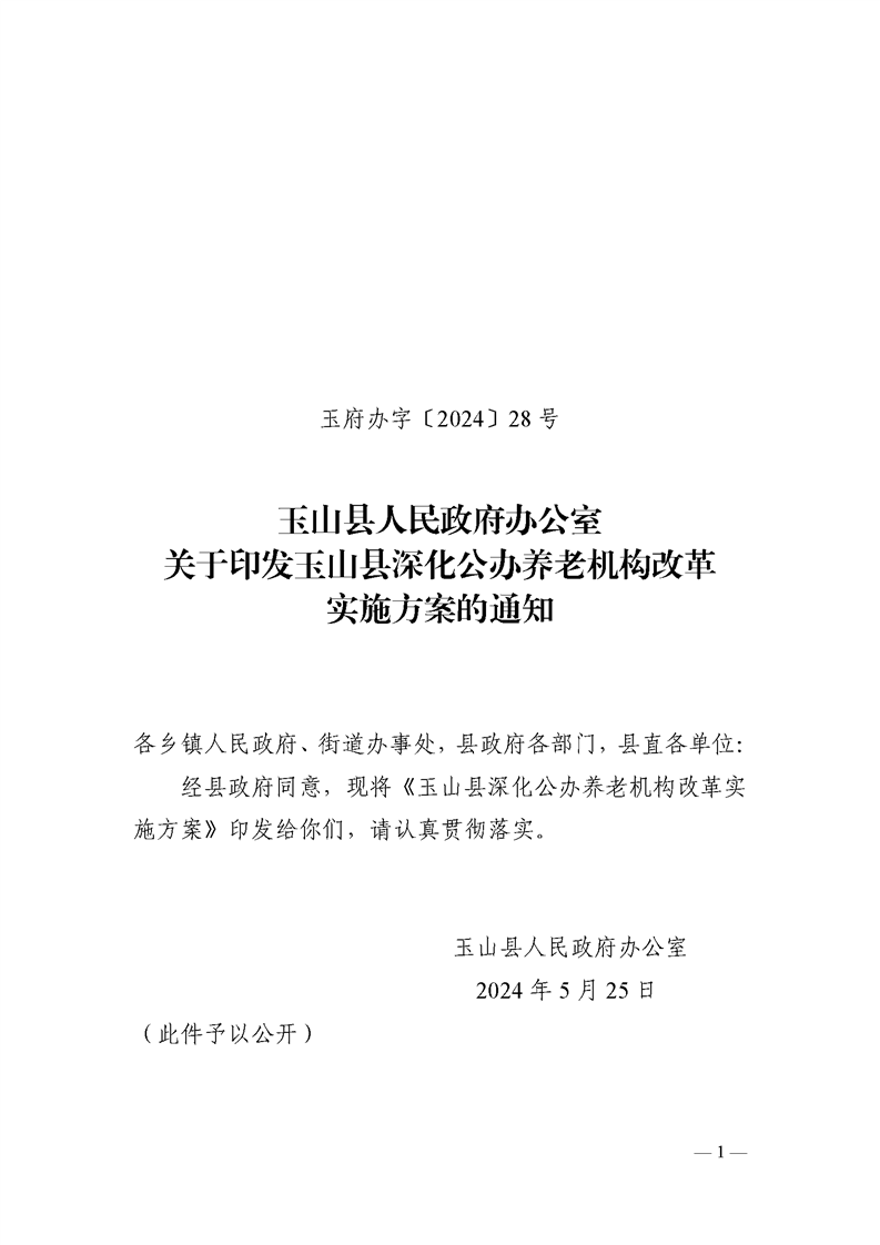 玉山縣人民政府辦公室關于印發玉山縣深化公辦養老機構改革實施方案的通知