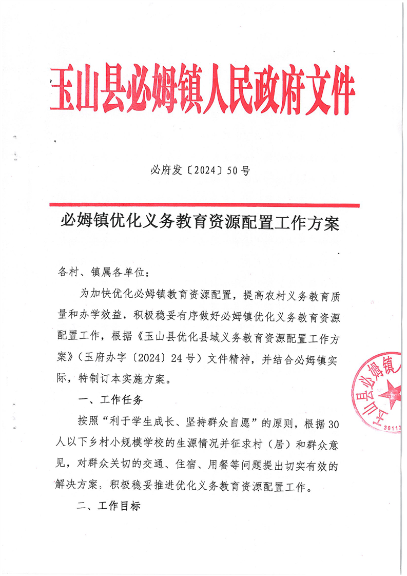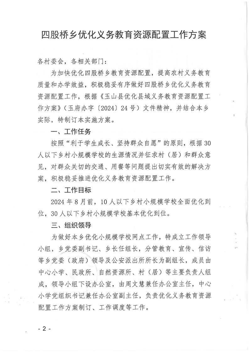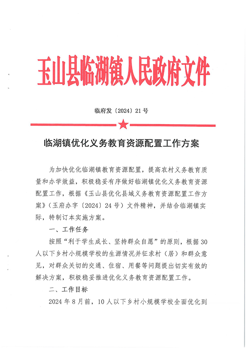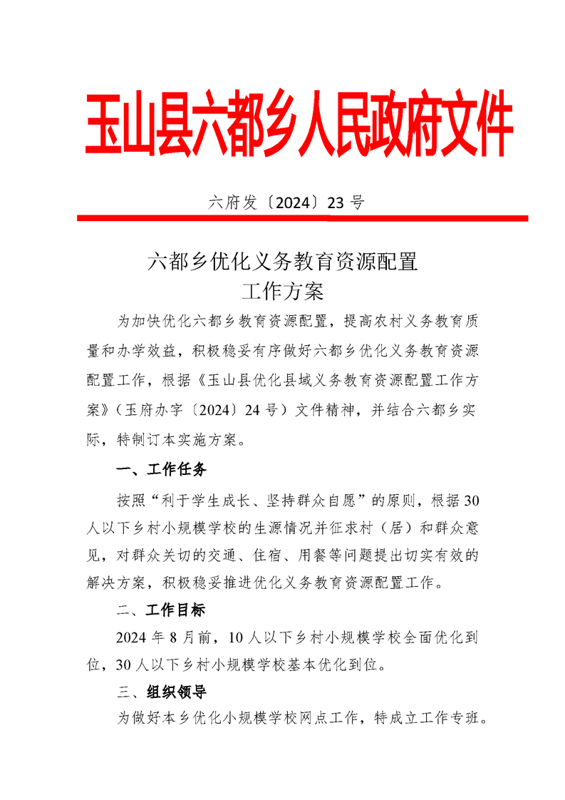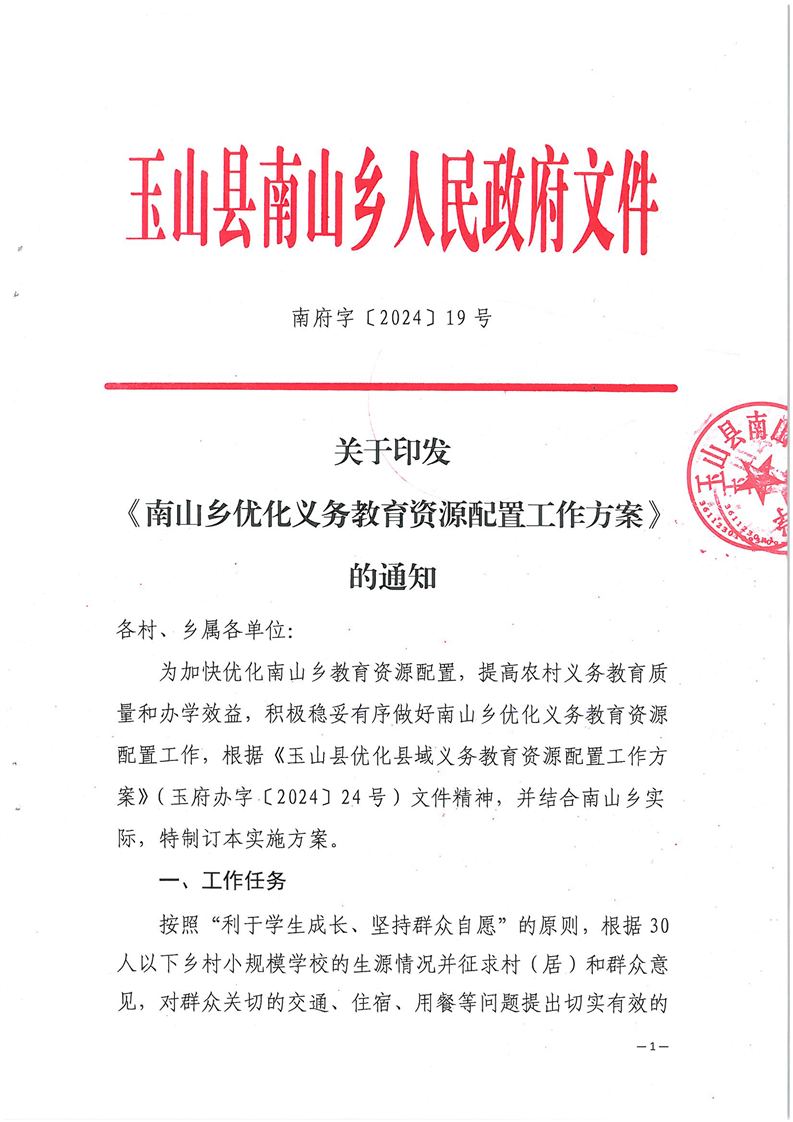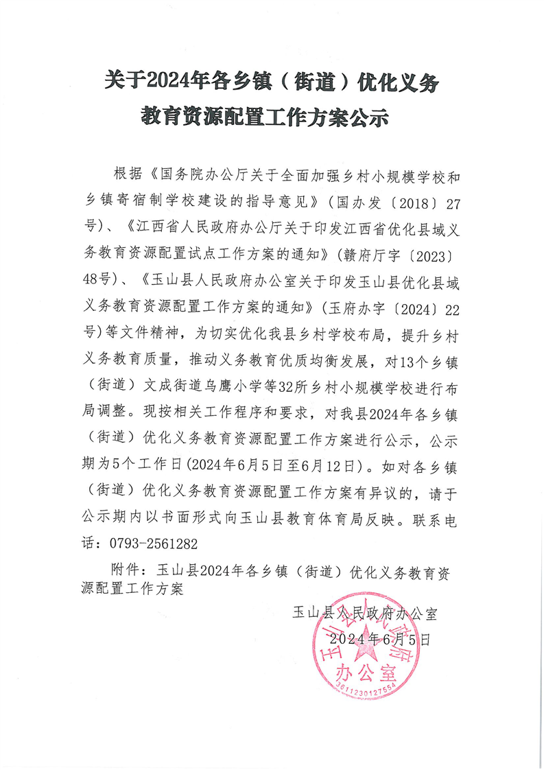 關于玉山縣2024年各鄉鎮(街道)優化義務教育資源配置工作方案公示