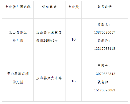 玉山縣主城區(qū)部分公辦幼兒園余位登記公告