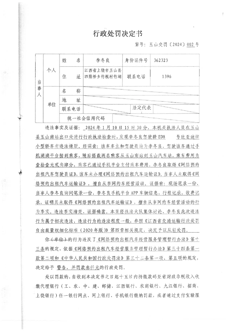 行政處罰決定書