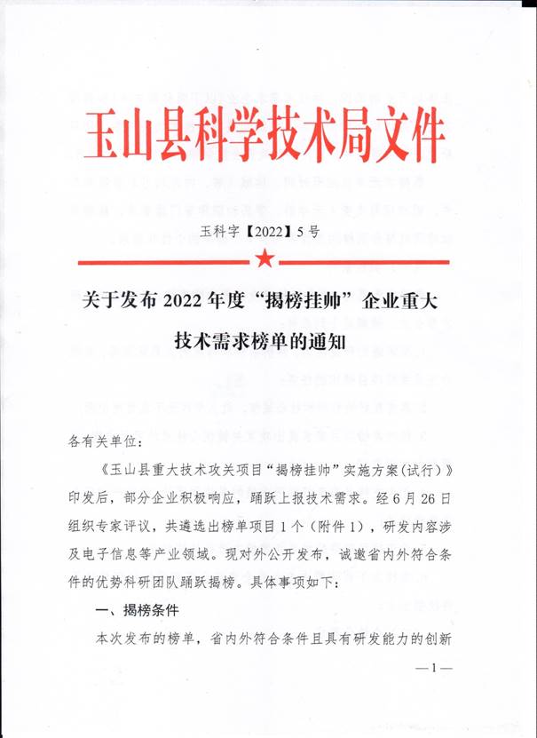 關(guān)于發(fā)布2022年度“揭榜掛帥”企業(yè)重大技術(shù)需求榜單的通知