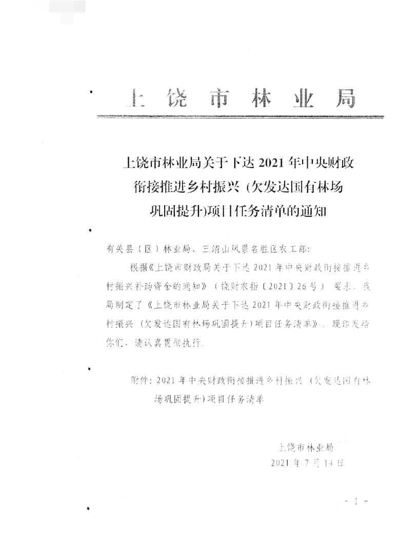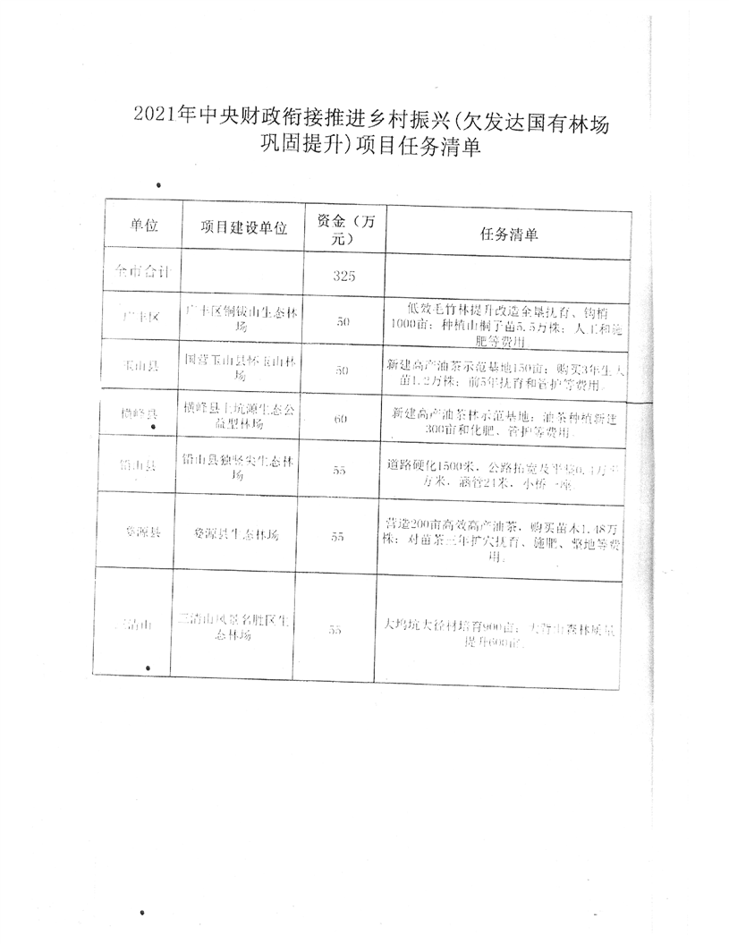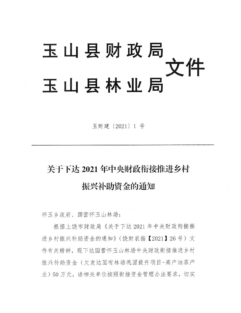 玉山縣財政局 林業局關于下達2021年中央財政銜接推進鄉村振興補助資金的通知