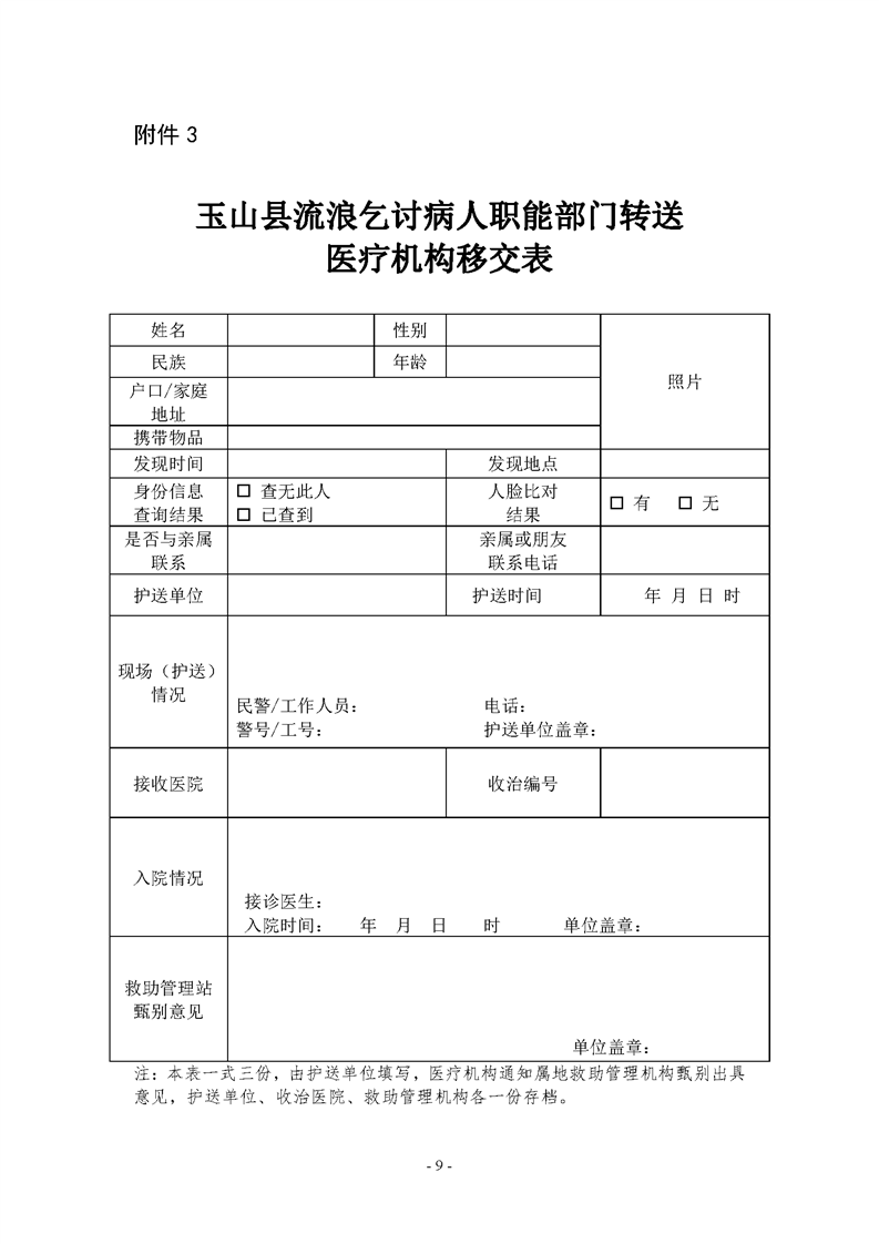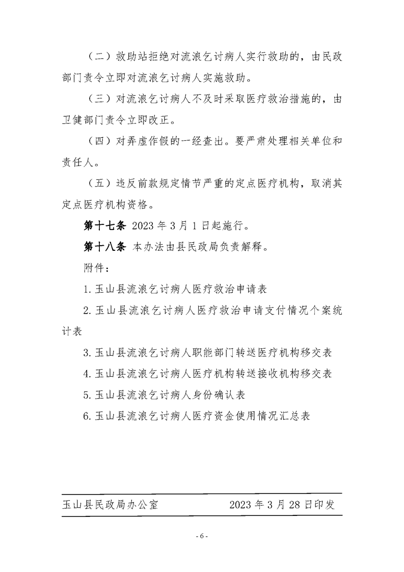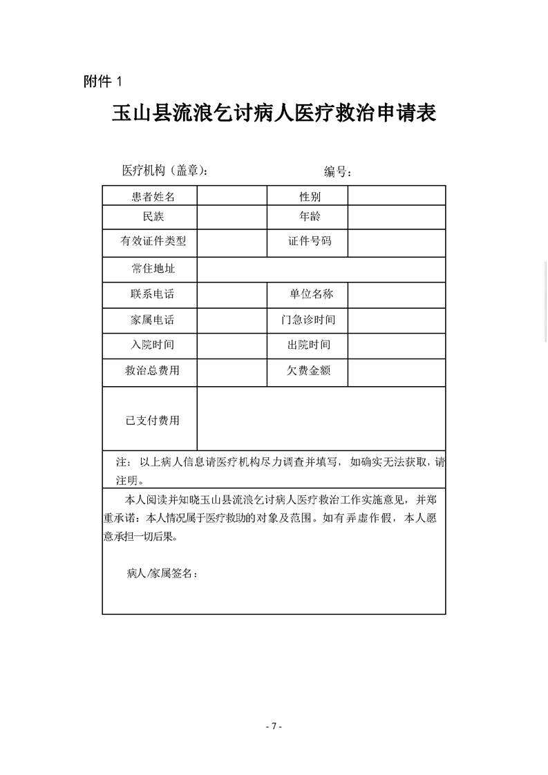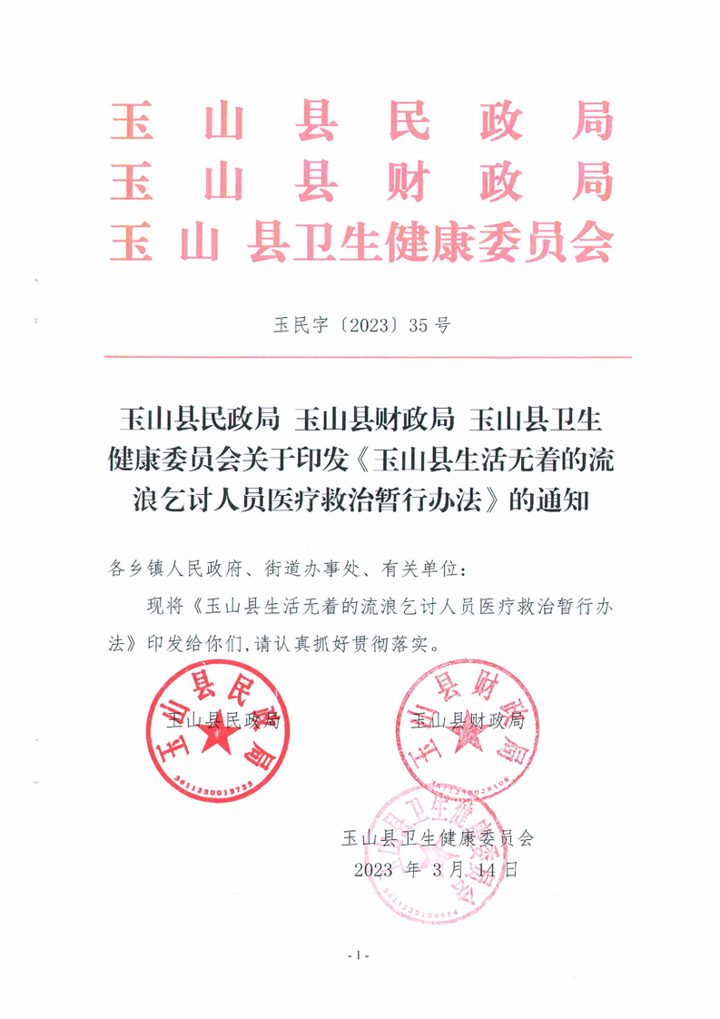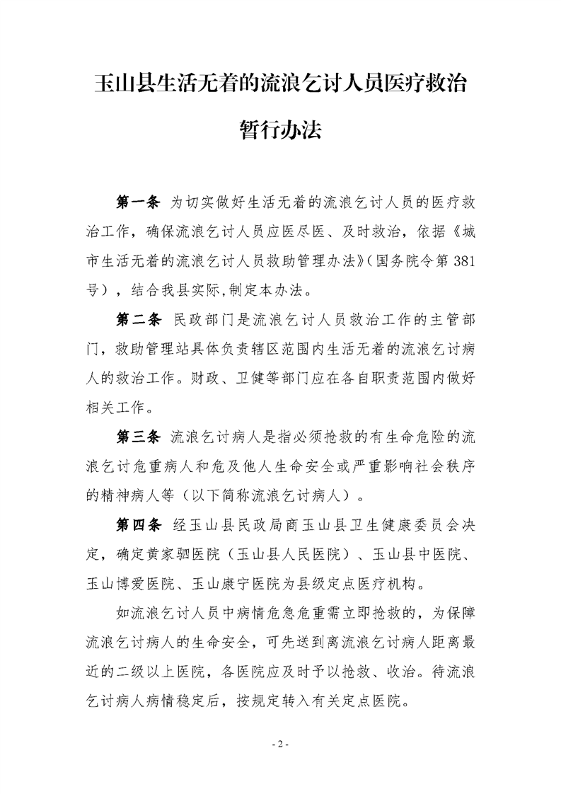 關于印發《玉山縣生活無著的流浪乞討人員醫療救治暫行辦法》的通知
