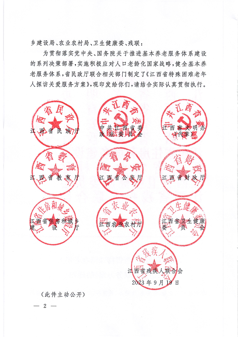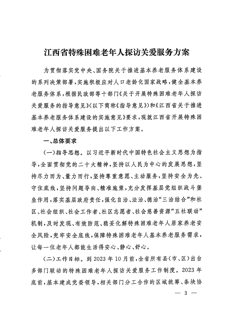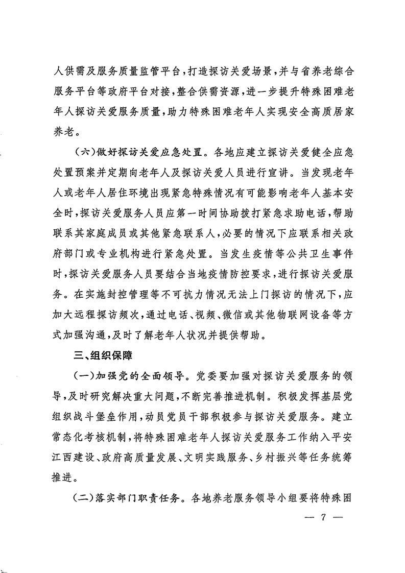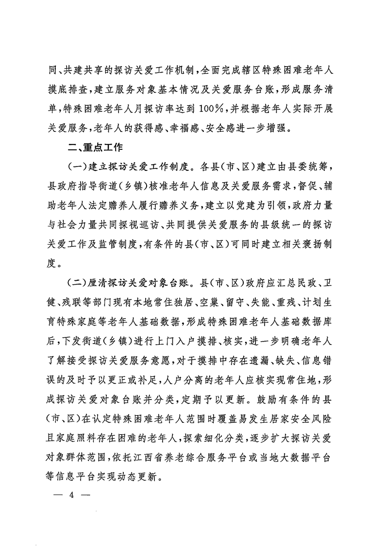 關(guān)于印發(fā)《江西省特殊困難老年人探訪關(guān)愛(ài)服務(wù)方案》的通知
