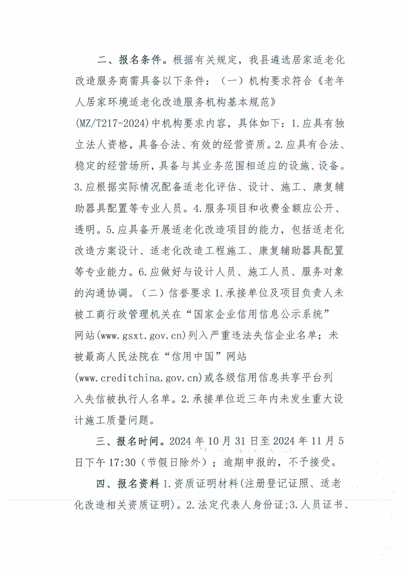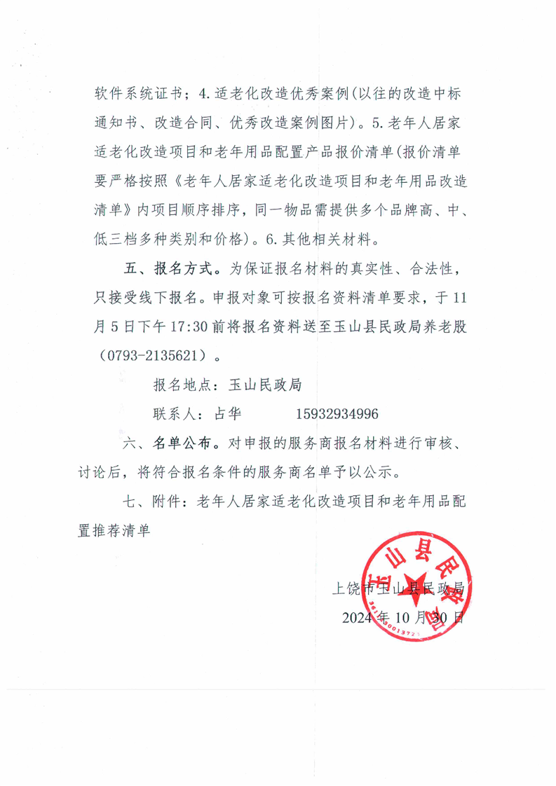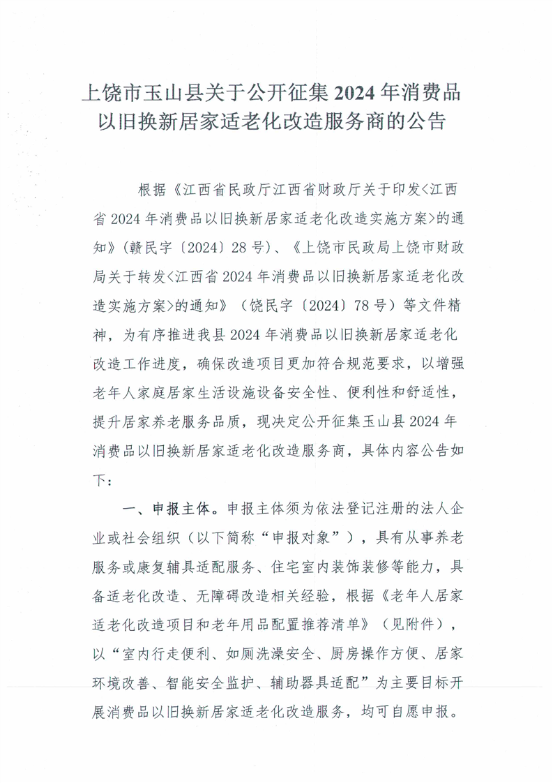 上饒市玉山縣關于公開征集2024年消費品以舊換新居家適老化改造服務商的公告