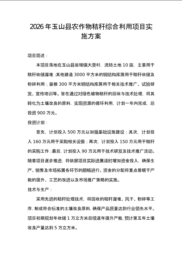 2026年玉山縣農作物秸稈綜合利用項目實施方案