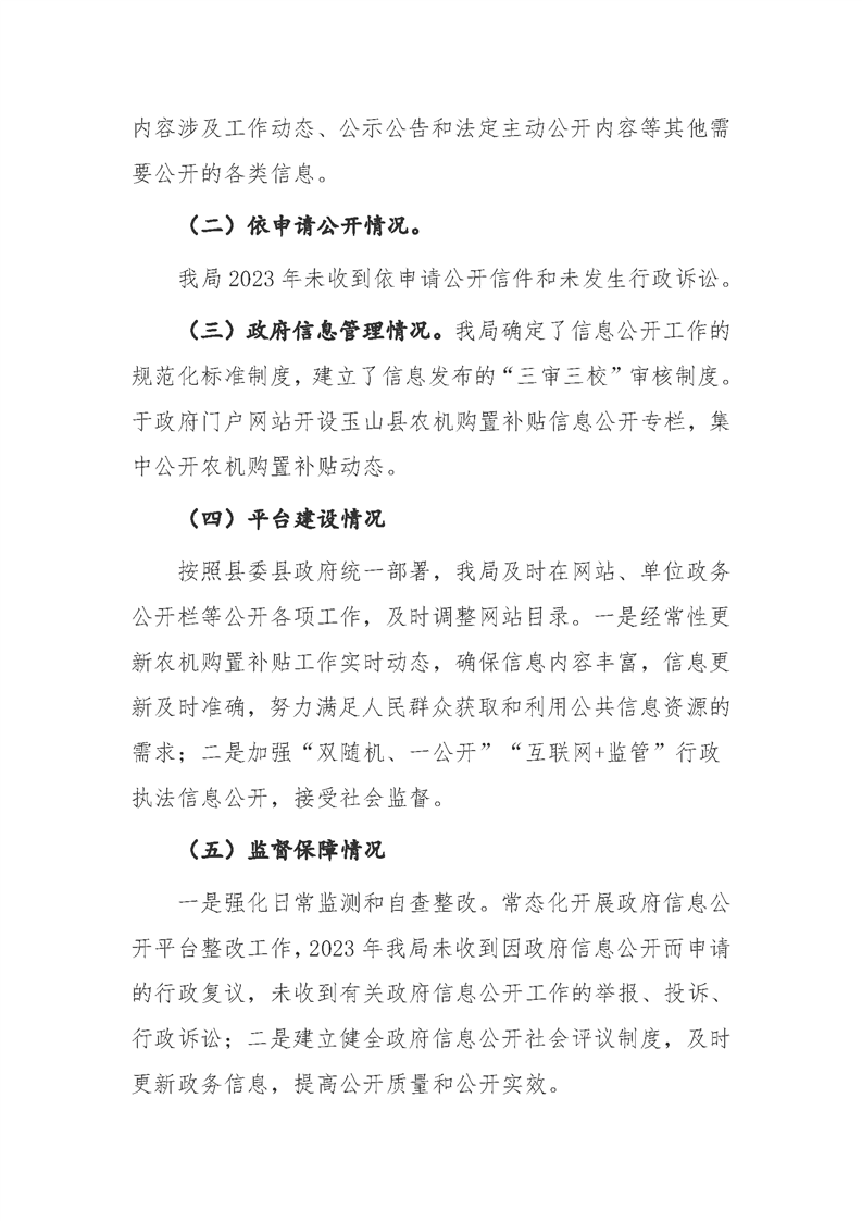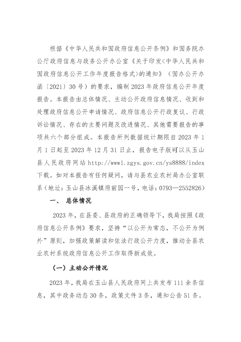 玉山縣農業農村局關于2023年政府信息公開工作年度報告