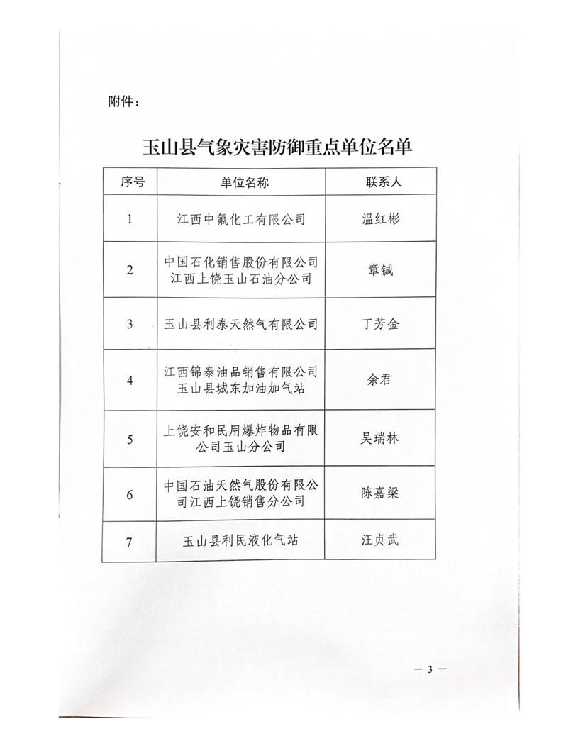 玉山縣人民政府辦公室關于公布玉山縣氣象災害防御重點單位的通知