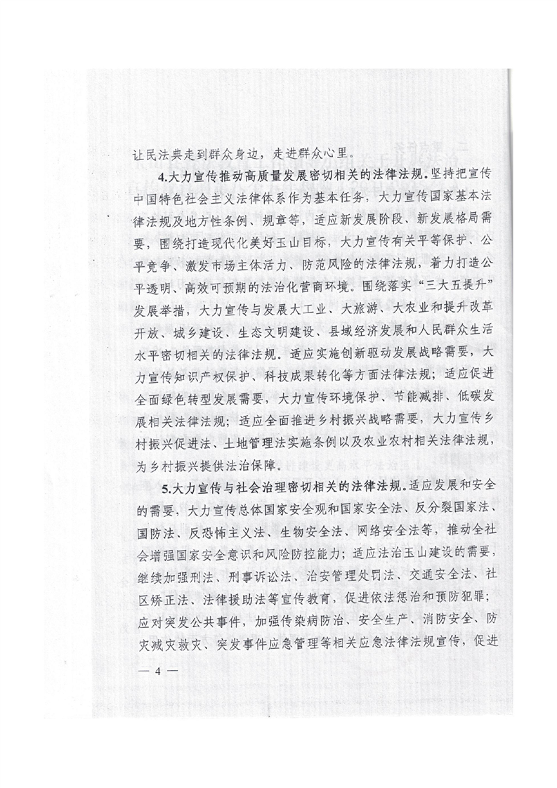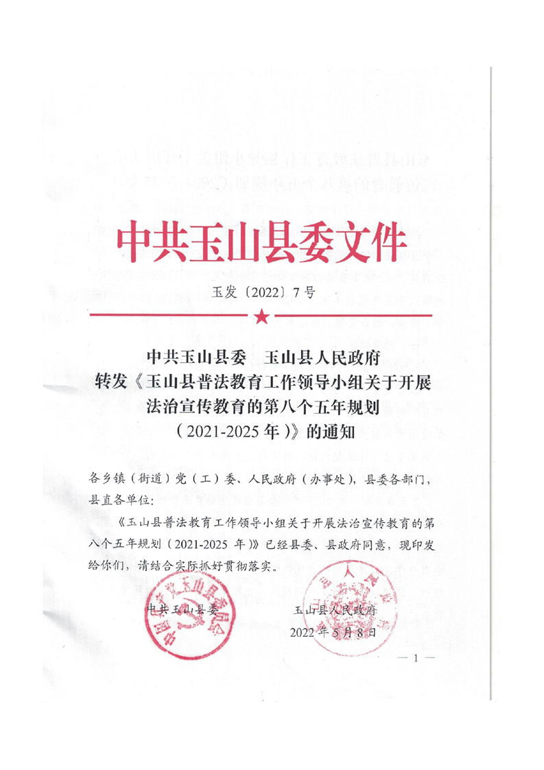 中共玉山縣委玉山縣人民政府轉(zhuǎn)發(fā)《玉山縣普法教育工作領(lǐng)導(dǎo)小組關(guān)于開(kāi)展法治宣傳教育的第八個(gè)五年規(guī)劃(2021-2025年)》的通知