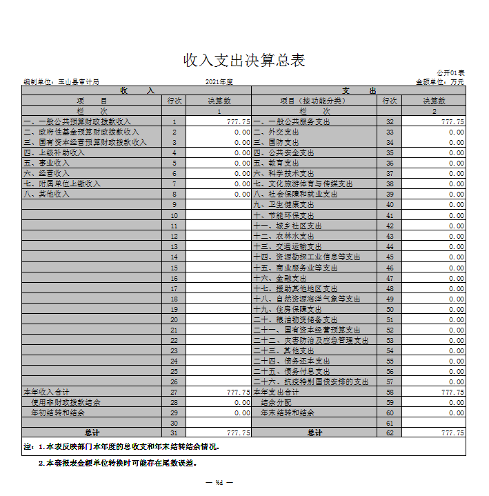 本單位2021年度支出總計777.75萬元,其中本年支出合計 萬元,較2020年增加241.44萬元,增長45.02%,主要原因是:審計項目的增加,人員及經費的增加;年末結轉和結余0萬元,較2020年減少111.57萬元,下降100%,主要原因是:無資金結存。