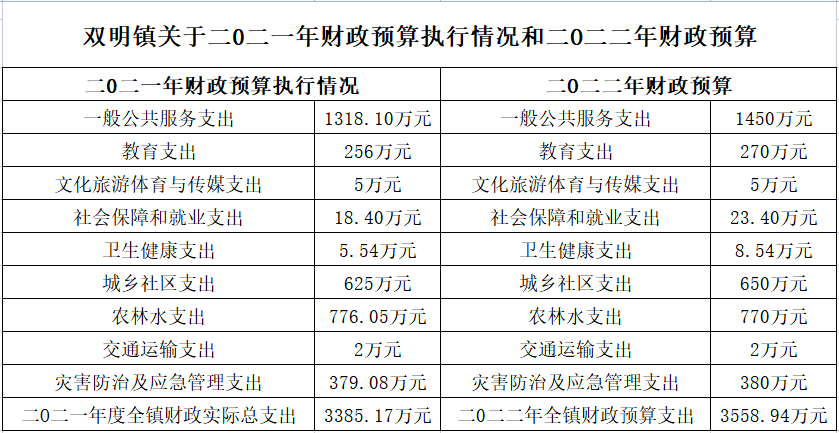 雙明鎮(zhèn)關(guān)于二0二一年財(cái)政預(yù)算執(zhí)行情況和二O二二年財(cái)政預(yù)算