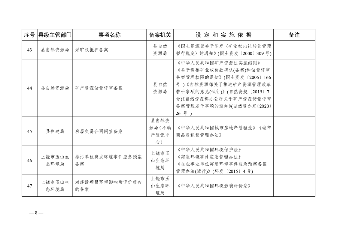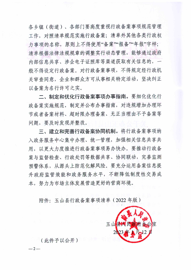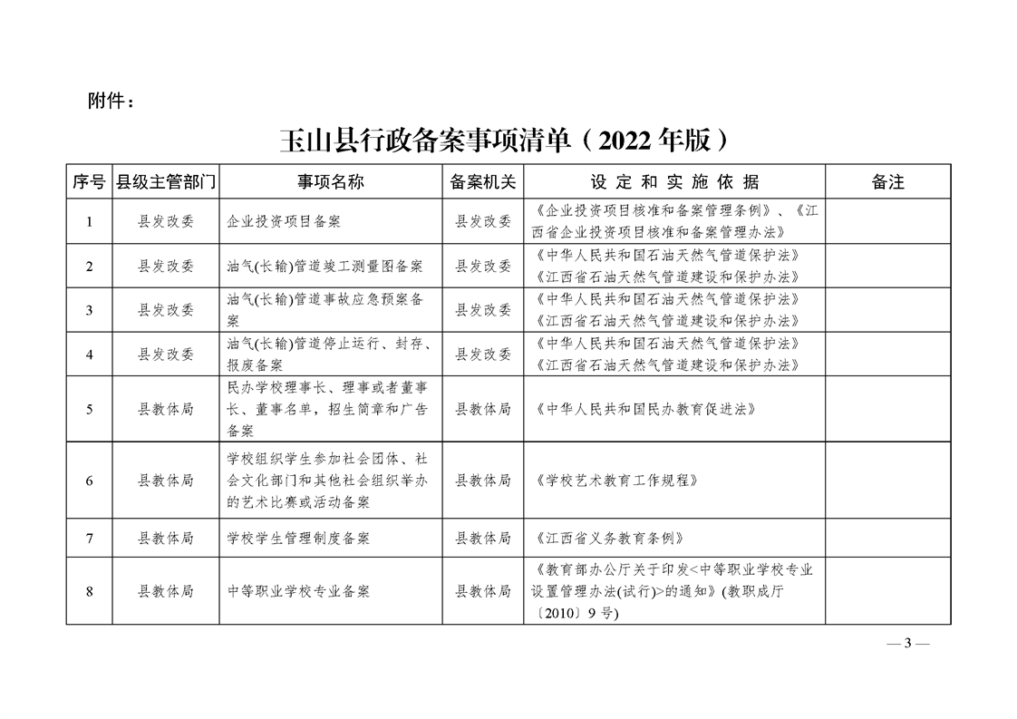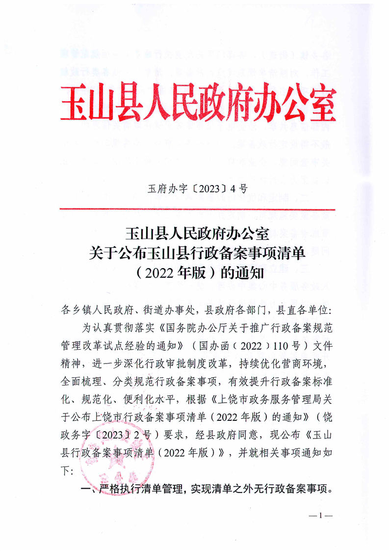 關于公布玉山縣行政備案事項清單(2022年版)的通知