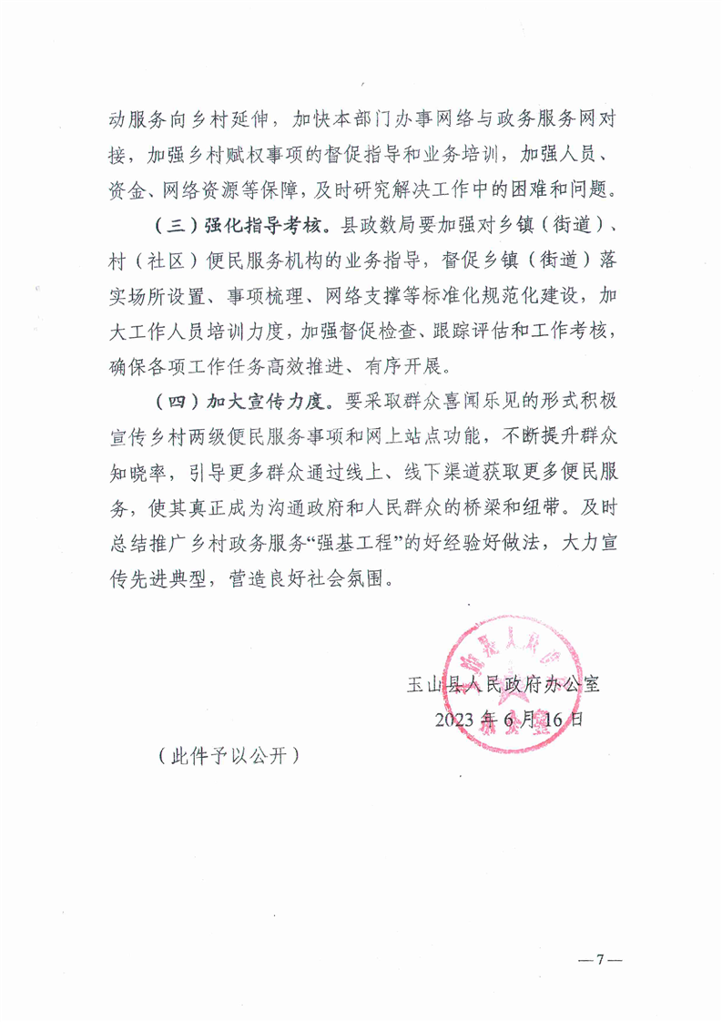 關(guān)于印發(fā)玉山縣實施鄉(xiāng)村兩級政務(wù)服務(wù)“強基工程”工作方案