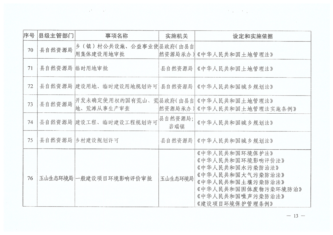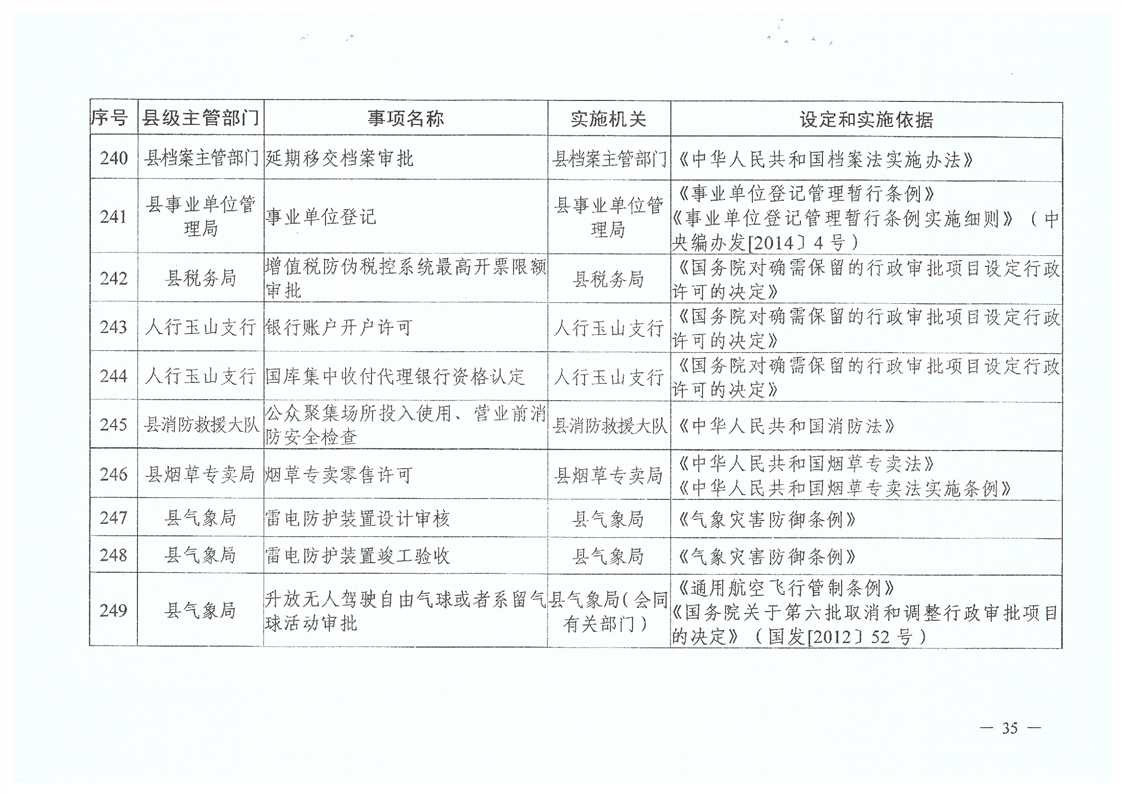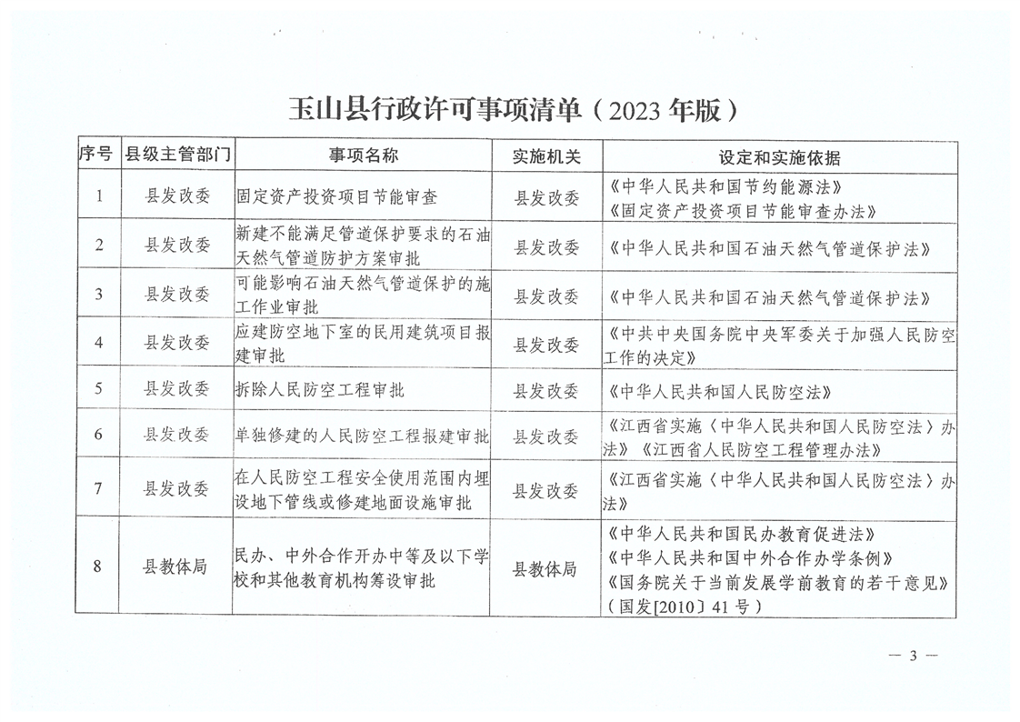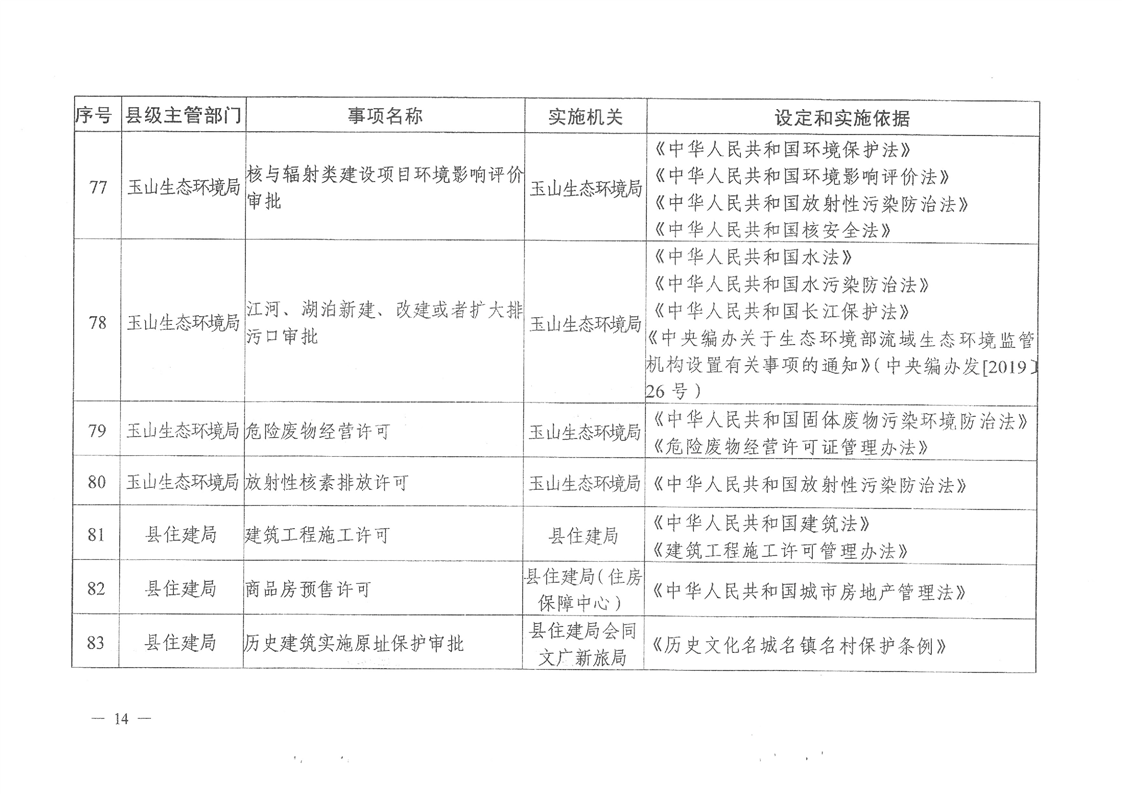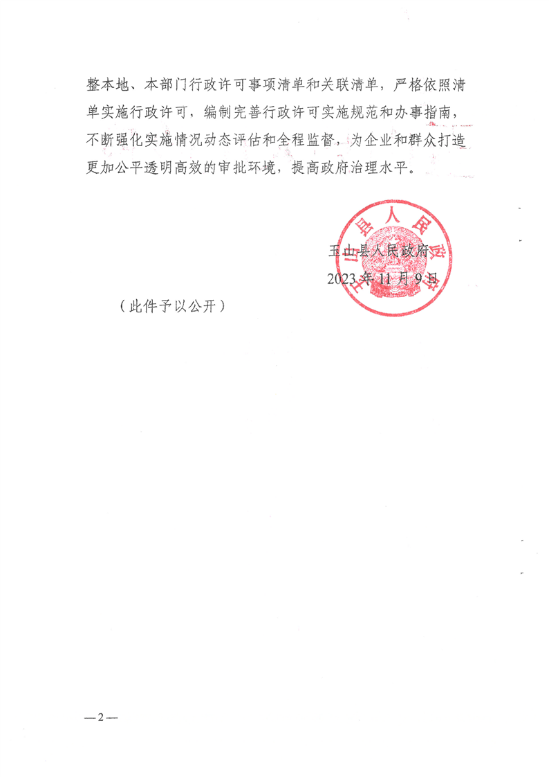 玉山縣人民政府關于公布玉山縣行政許可事項清單(2023年版)的通知