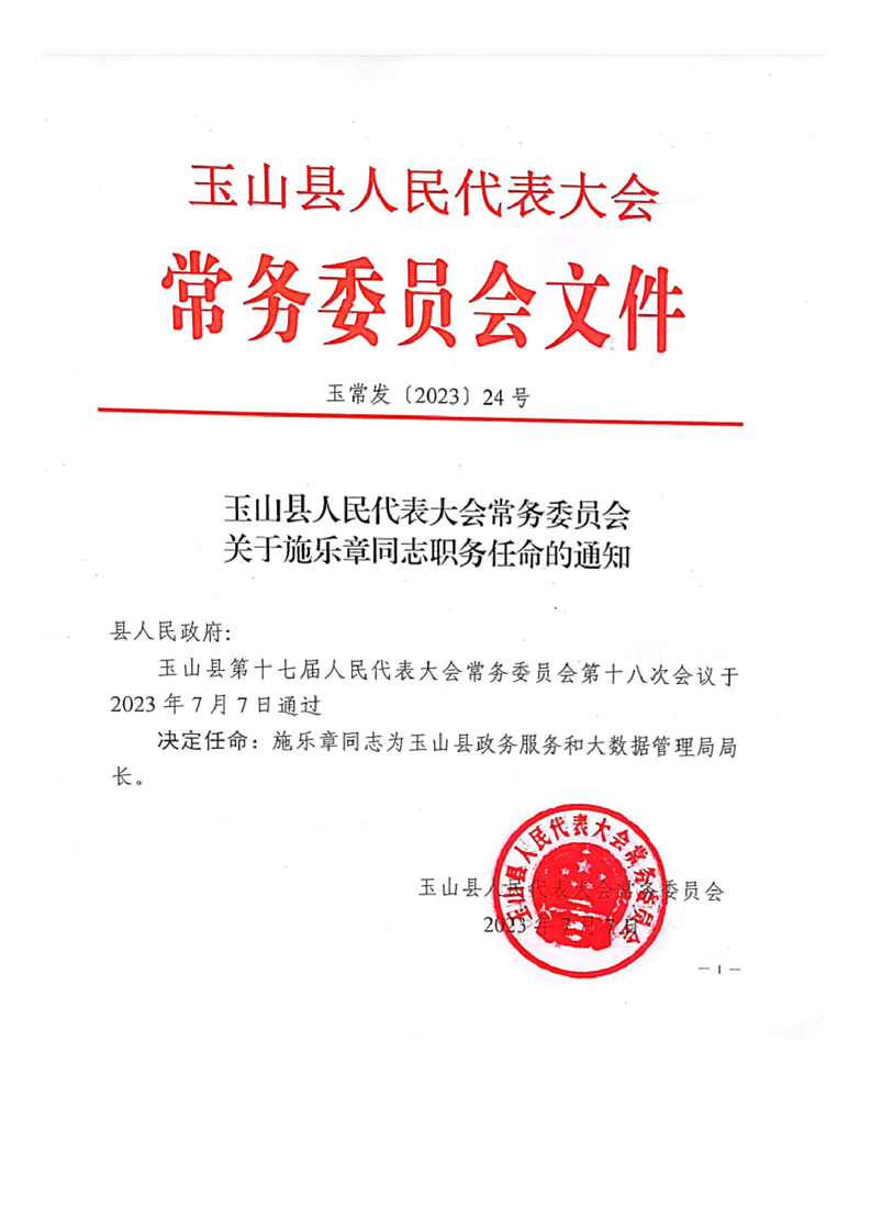 關于施樂章同志職務任命的通知
