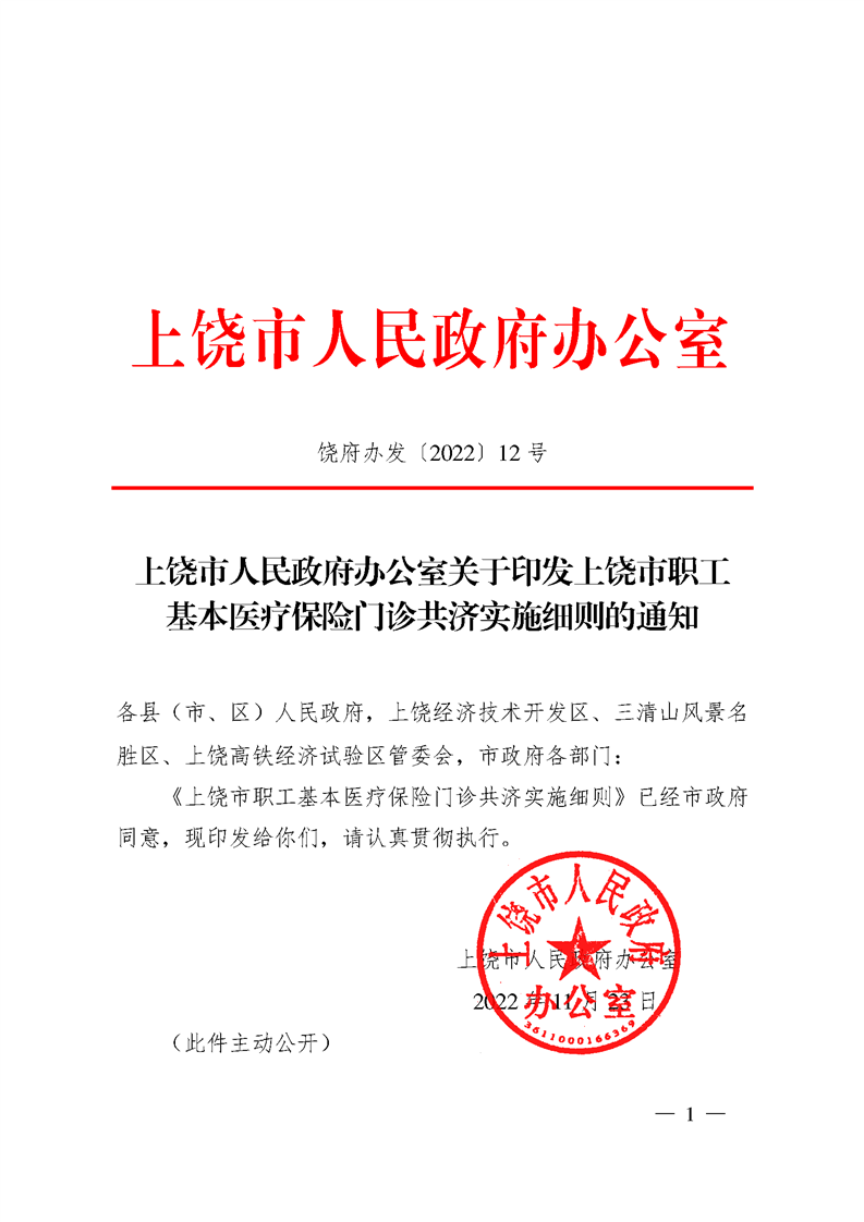 上饒市人民政府辦公室關于印發上饒市職工基本醫療保險門診共濟實施細則的通知