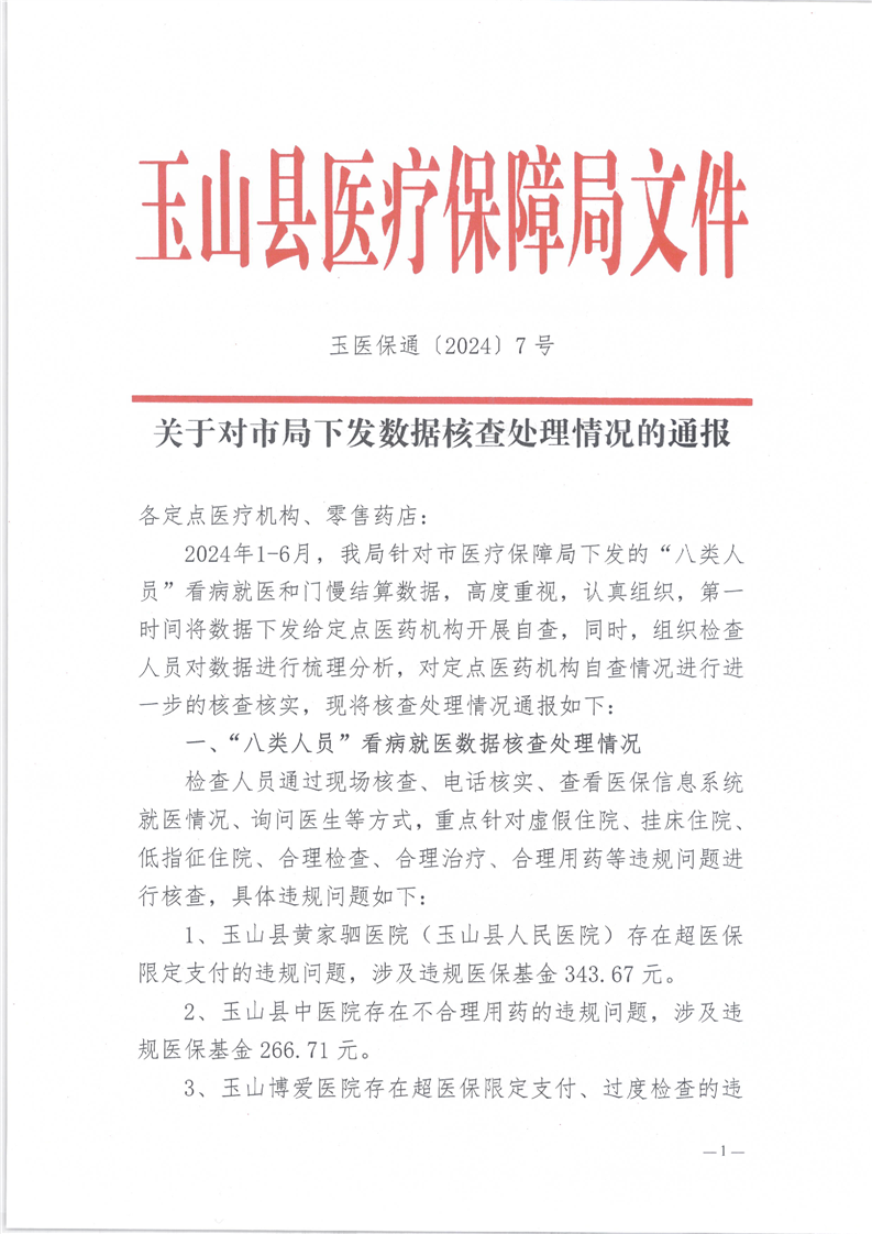 玉醫保通[2024]7號關于對市局下發數據核查處理情況的通報