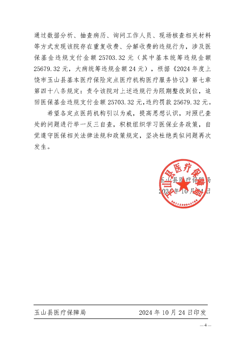 玉醫(yī)保通[2024]11號 關于市飛行、交叉檢查定點醫(yī)藥機構違規(guī)行為處理情況的通報