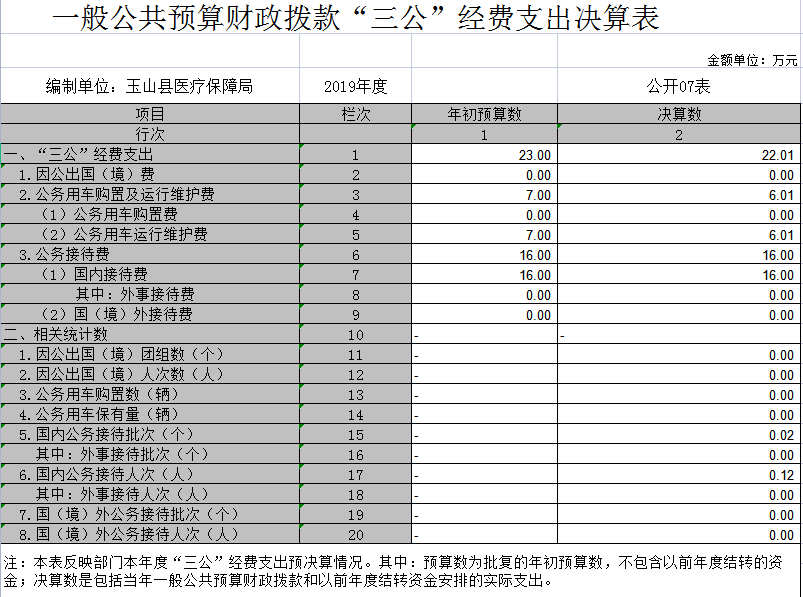 玉山縣醫療保障局2019年度一般公共預算財政撥款“三公”經費支出決算表