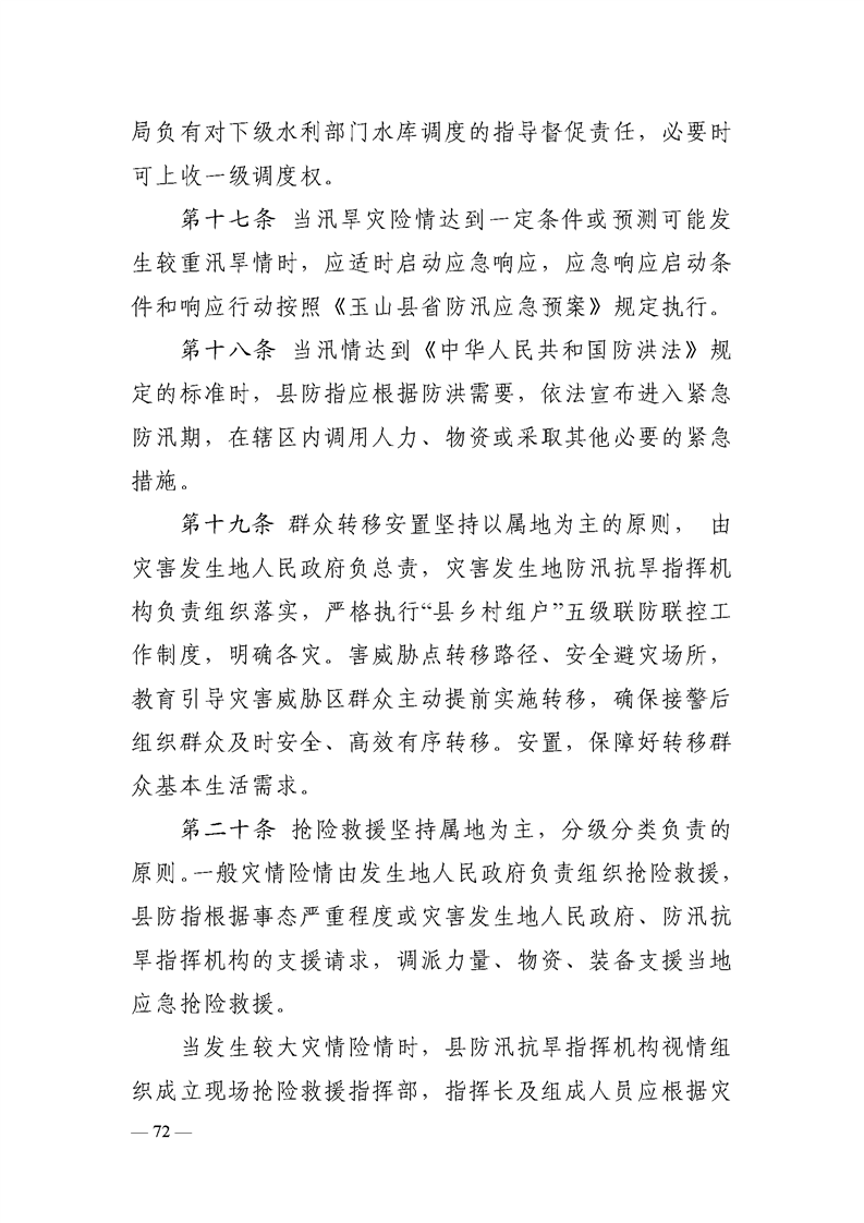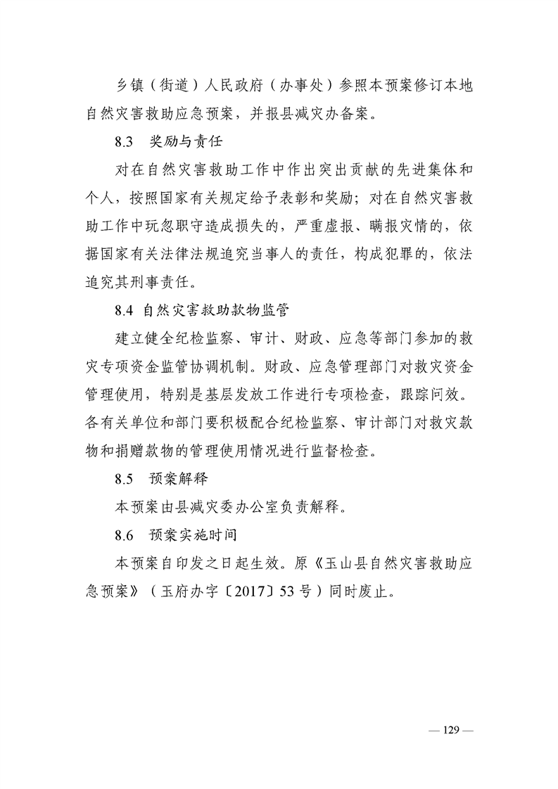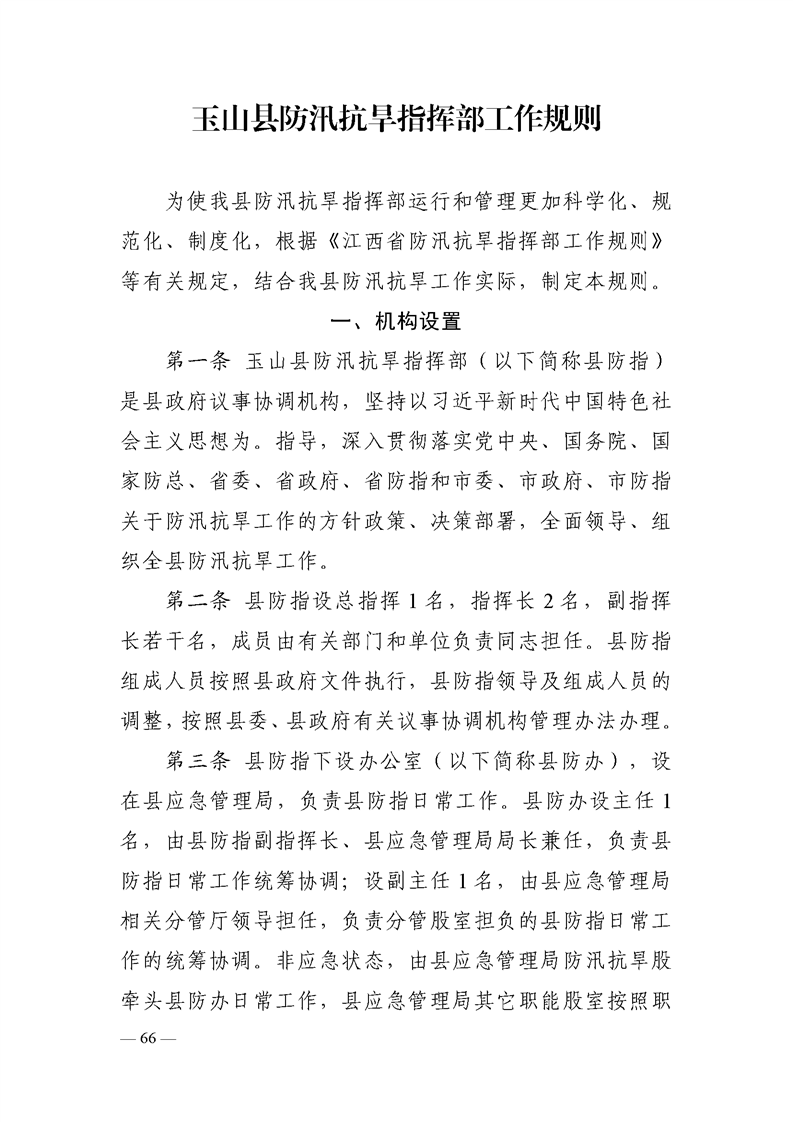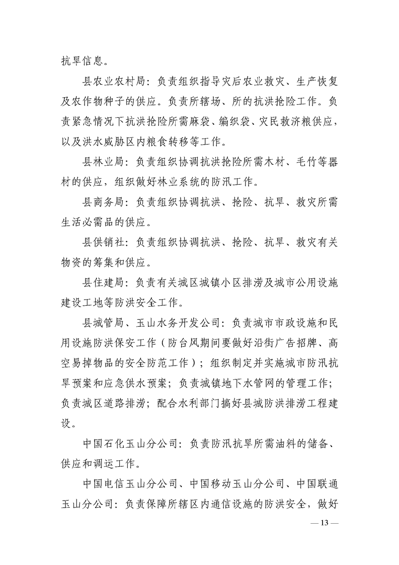 玉府辦字[2021]21號(關于印發《玉山縣防汛抗旱應急預案》《玉山縣防汛抗旱指揮部工作規則》《玉山縣森林防火應急預案》和《玉山縣自然災害救助應急預案》的通知)