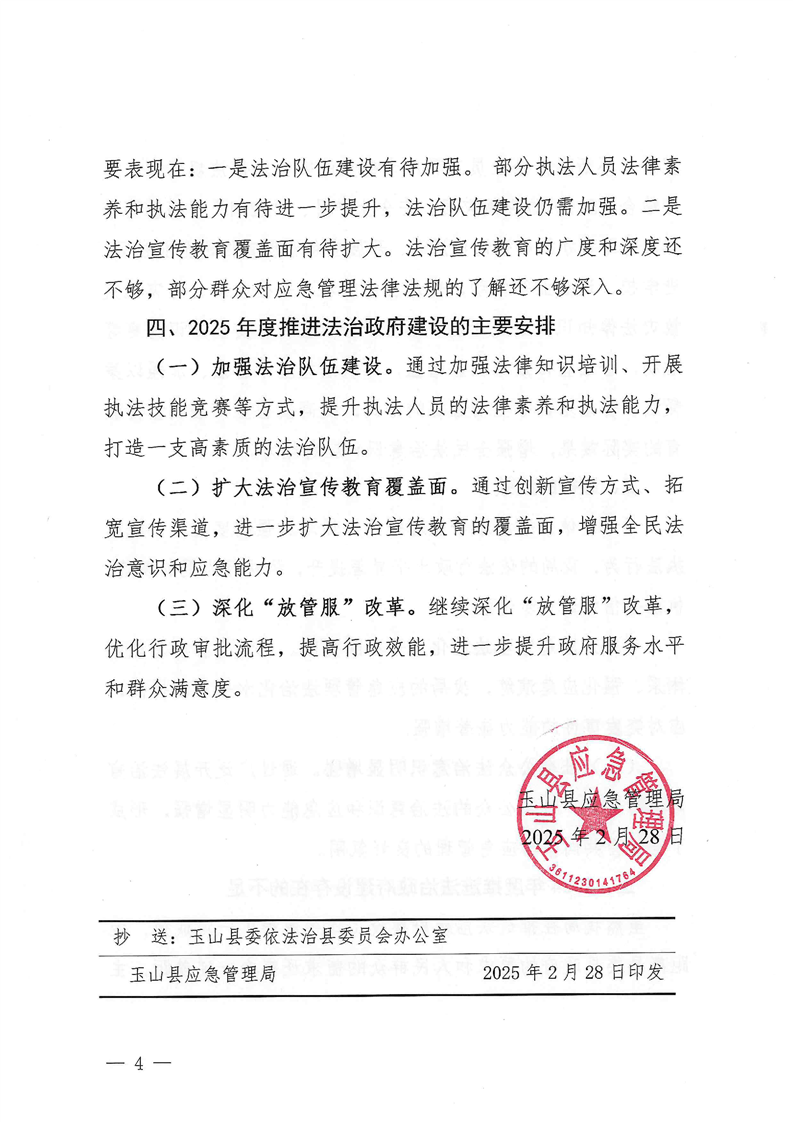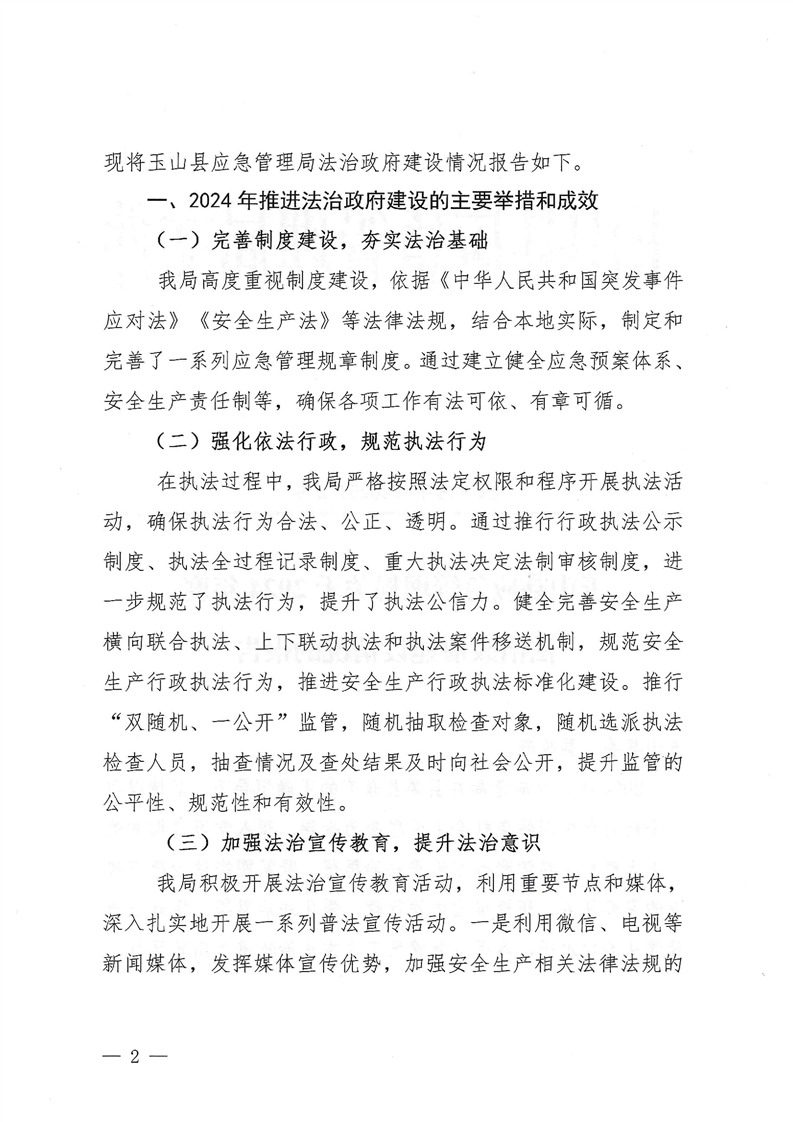 玉應(yīng)急字〔2025〕2號(hào)玉山縣應(yīng)急管理局關(guān)于2024年度法治政府建設(shè)情況的報(bào)告