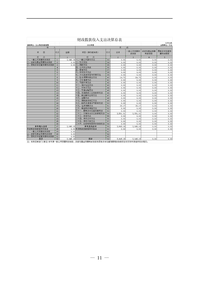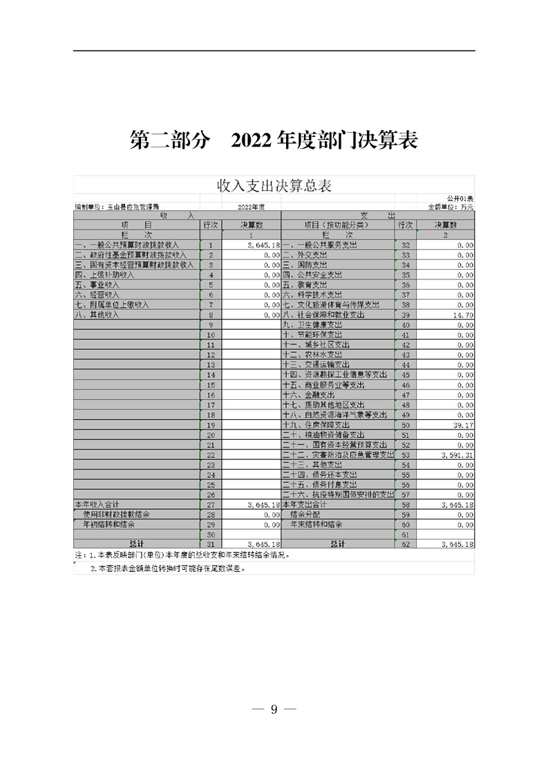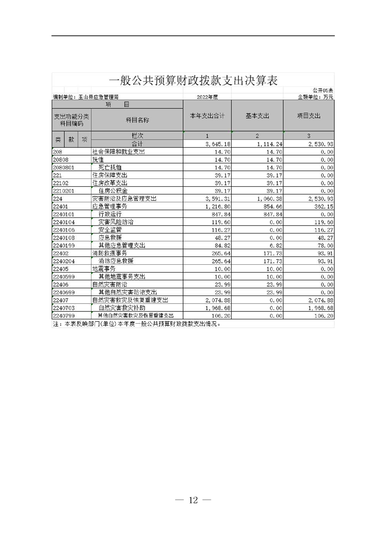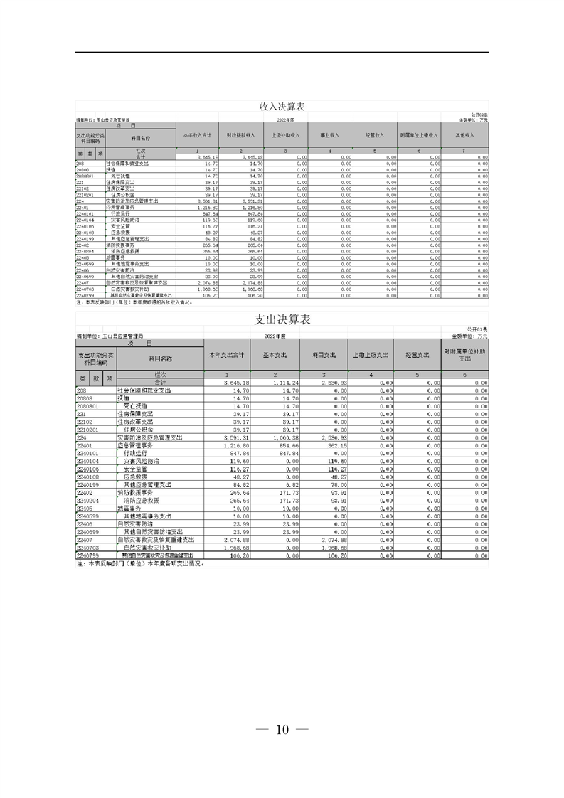 應急管理局2022年度決算