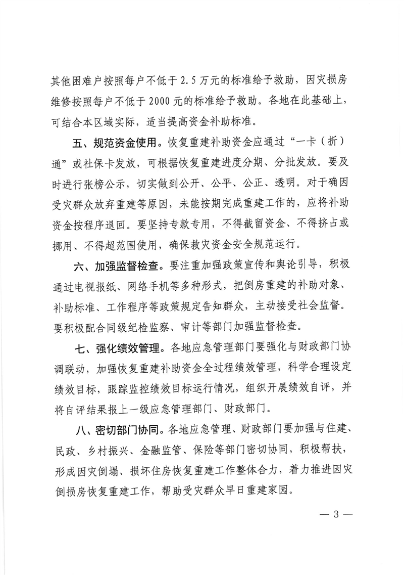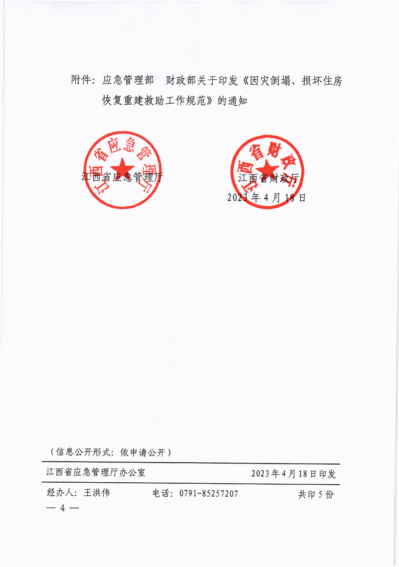 贛應急字53號+江西省應急管理廳 江西省財政廳關于進一步規(guī)范做好因災倒塌 、損壞住房恢復重建救助工作的通知