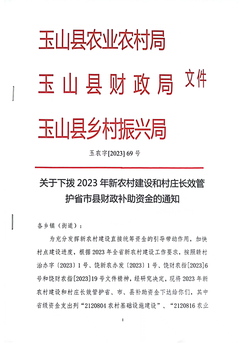 關于下撥2023年新農村建設和村莊長效管護省市縣財政補助資金的通知