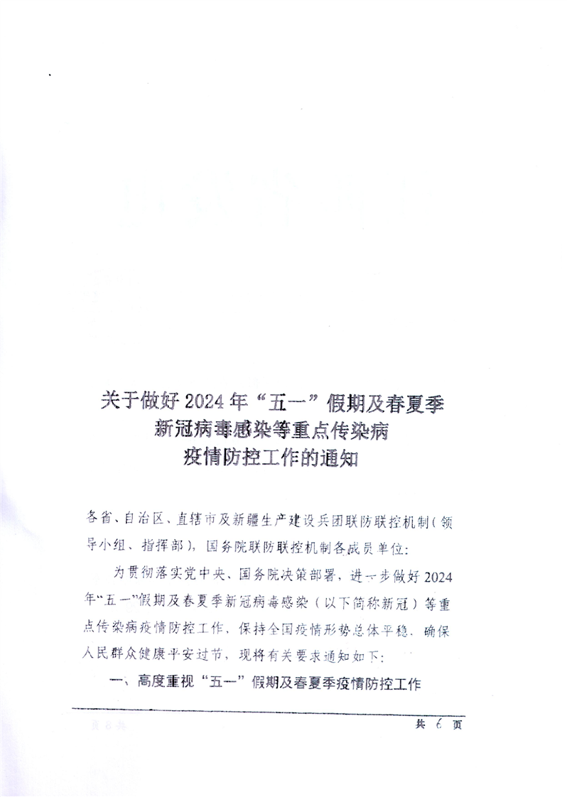 關于做好“五一”假期及春夏季新冠病毒感染等重點傳染病疫情防控工作的通知