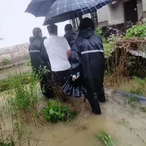 ▲各村(居)黨支部組織黨員干部幫助群眾及時轉移