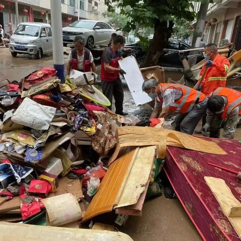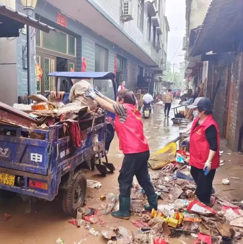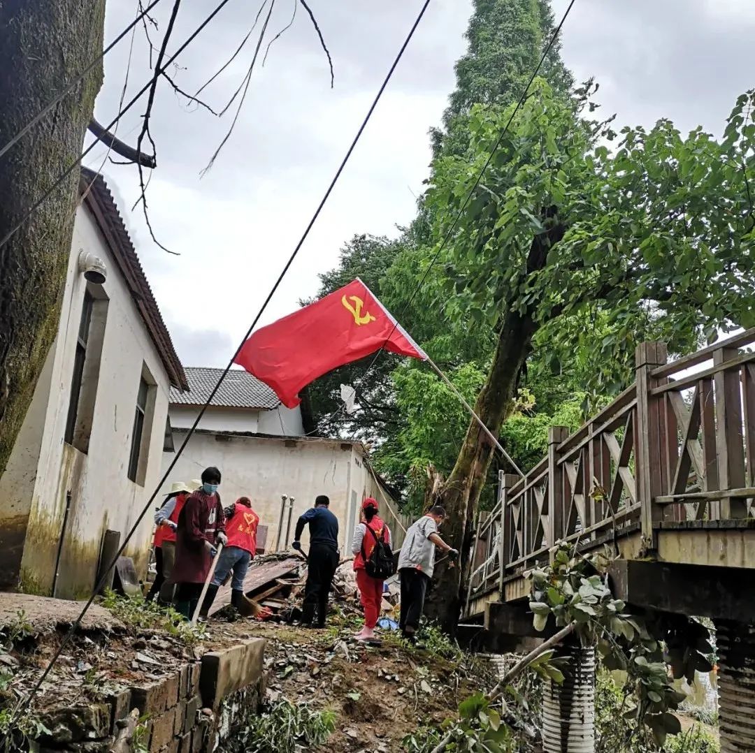 ▲黨員干部協助群眾開展災后清理、垃圾清運
