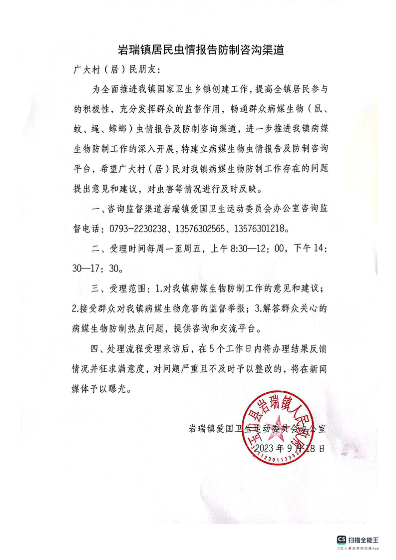巖瑞鎮居民蟲情報告防制咨詢渠道
