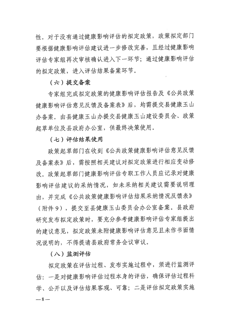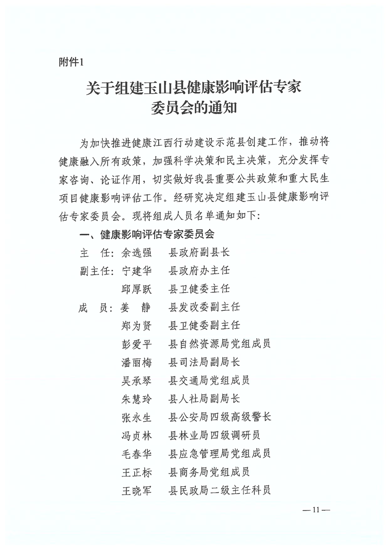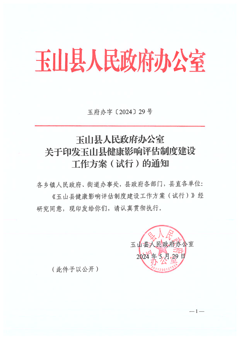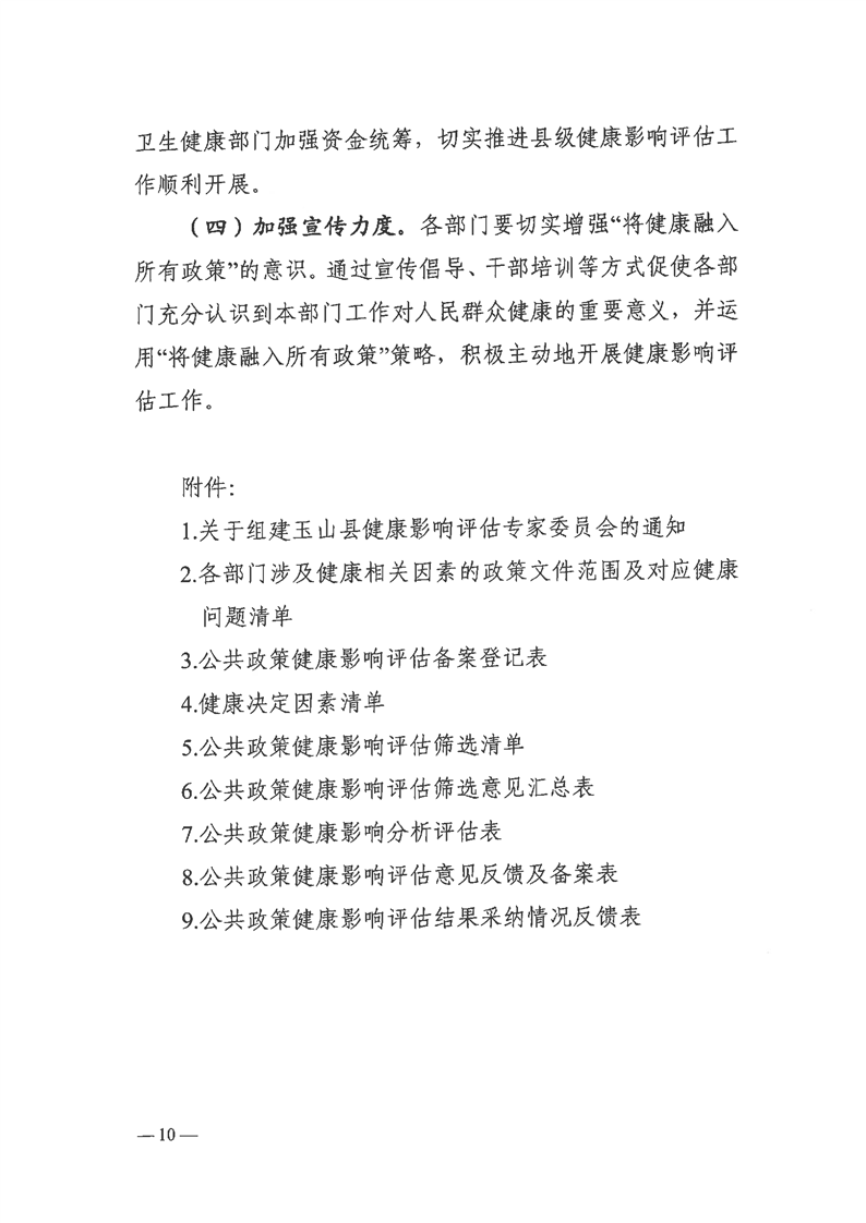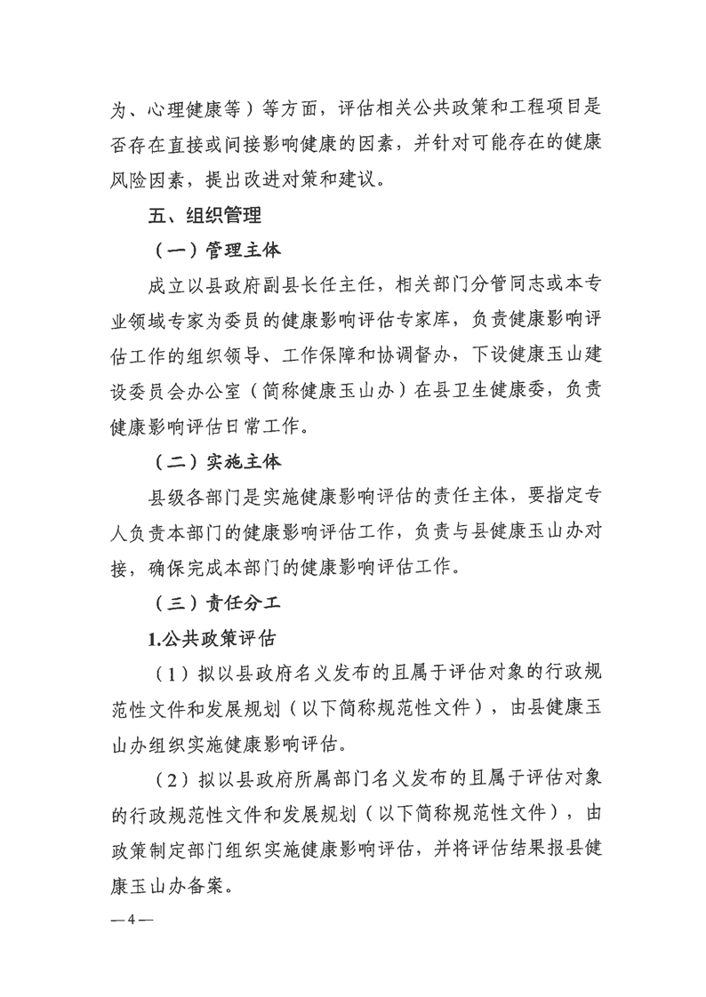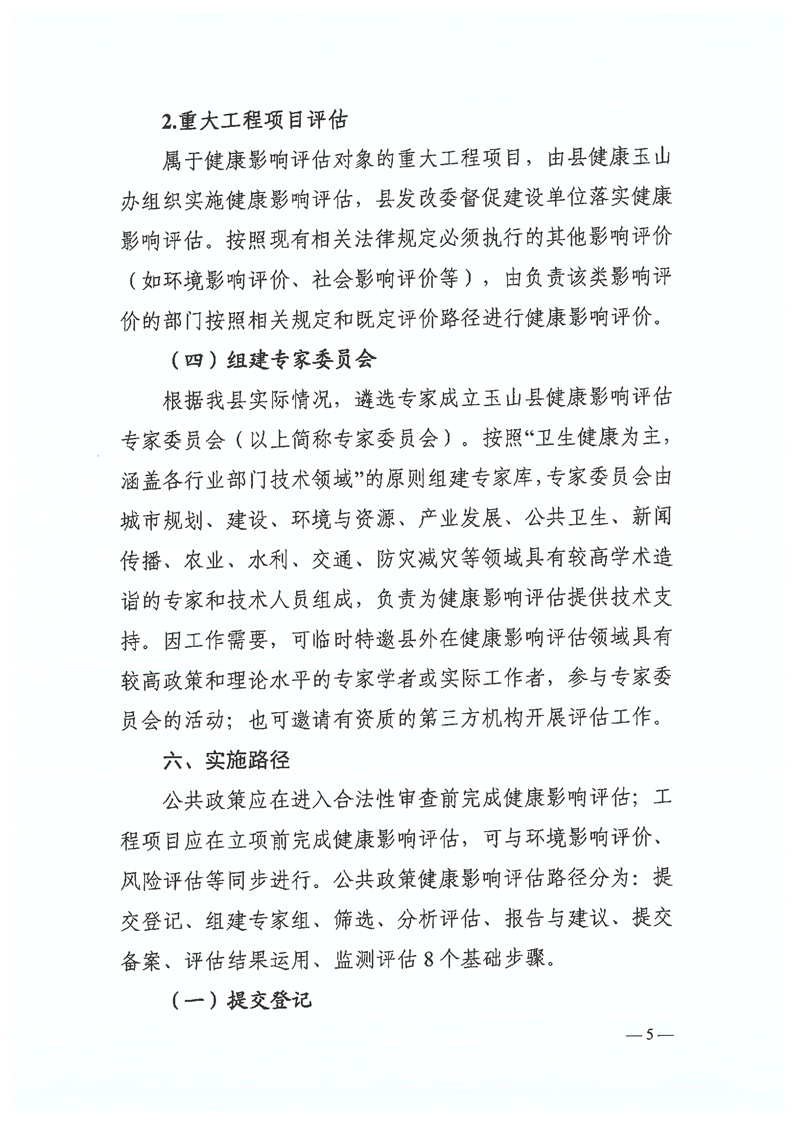 關于印發玉山縣健康影響評估制度建設工作方案(試行)的通知