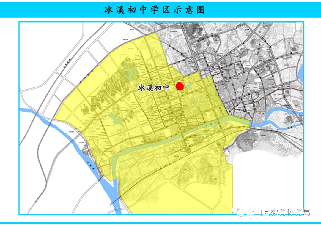 (1)冰溪初中學區:新建路南端為起點——新建路以西——府前路以南——人民大道以西——懷玉山大道以南——芳澤路以西——汪應辰北路以西區域為冰溪初中招生學區,其主要區塊為:老火車站、金交、郭家洲、萬柳洲、冰玉園D區、社稷壇C區、新家門、施家弄、政通園、解放西路、仁和園、荷花園、四季花城、宏達國際花園、凱瑞翡翠城、金山名仕花苑、鳳凰城、萬柳江南、恒信小區、鳳凰名庭、七里街安置區、墩上安置區、武安新城、武安南苑、雙柳新城、甲秀、錦繡家園、中欣豪庭、金玉名都、民安園、甘露園、金福家園、金山雅居、金地天城、金山玉府、綠景花園、玫瑰花城、七里街、后垅、金山首府等。