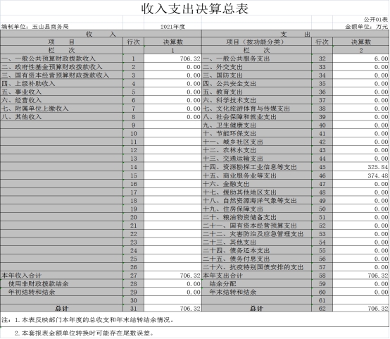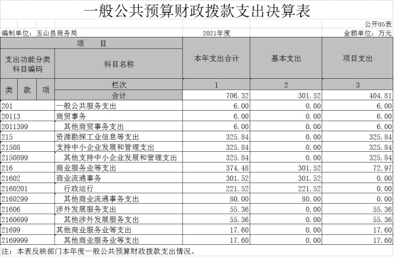玉山縣商務局2021年部門決算