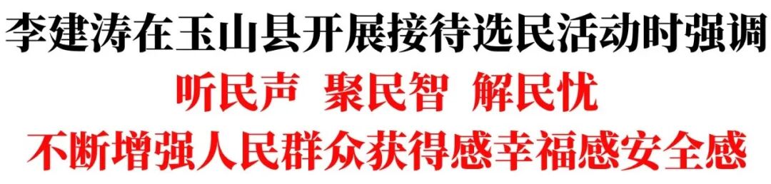 10月27日,市委副書記、市長李建濤以人大代表身份,來到玉山縣冰溪街道人大代表聯絡站開展接待選民活動。他強調,要深入學習貫徹習近平總書記關于堅持和完善人民代表大會制度的重要思想,始終堅持以人民為中心,聽民聲、聚民智、解民憂,不斷增強人民群眾的獲得感、幸福感、安全感。市人大常委會副主任江怡、市政府秘書長毛祖賓參加。