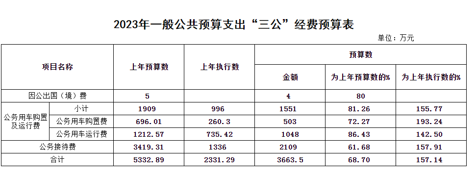 2023年一般公共預(yù)算支出“三公”經(jīng)費(fèi)預(yù)算表