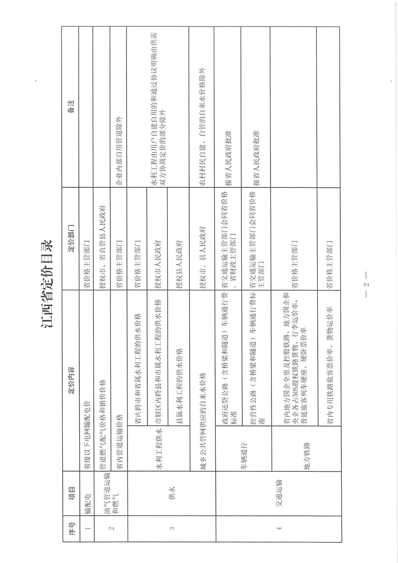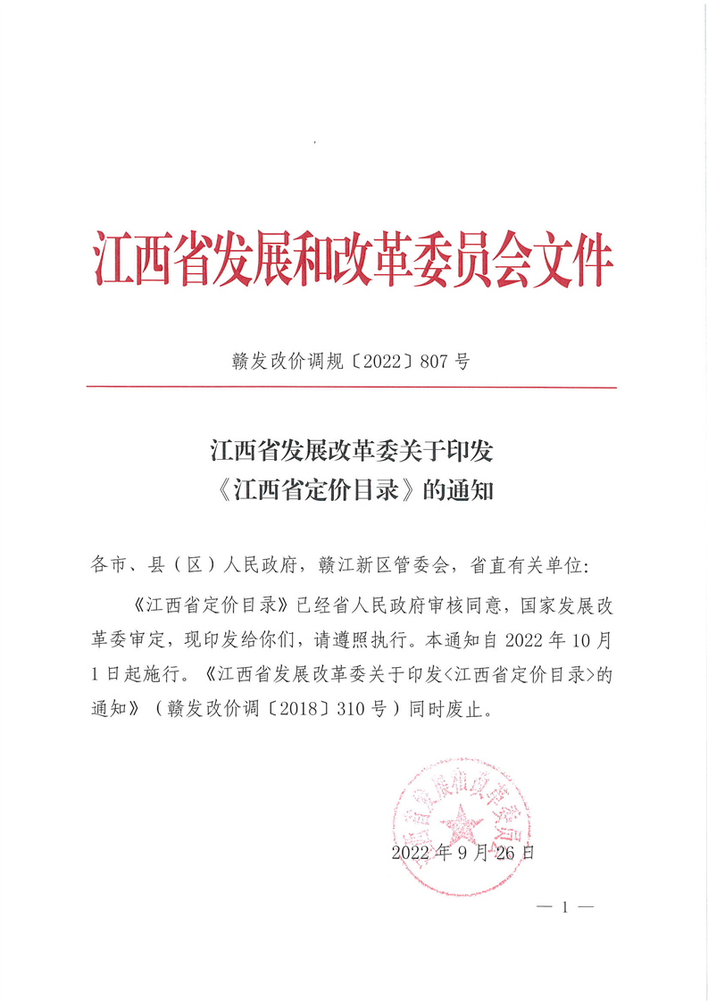 江西省發展改革委關于印發《江西省定價目錄》的通知