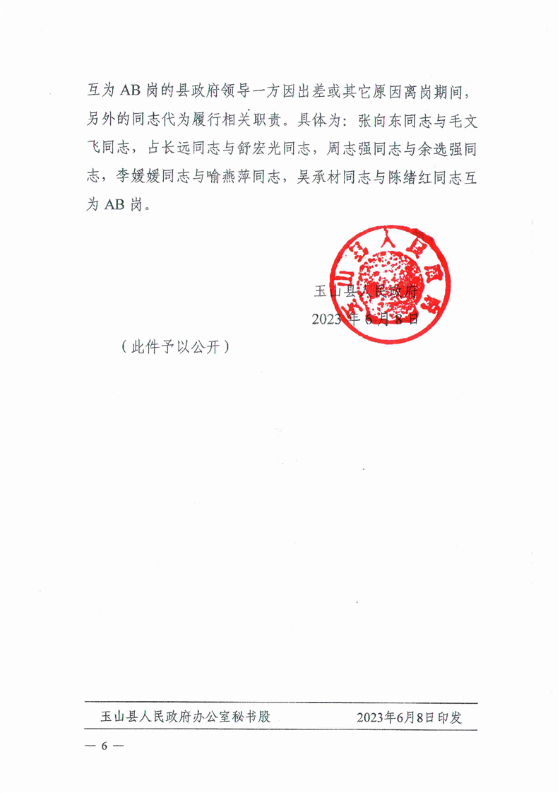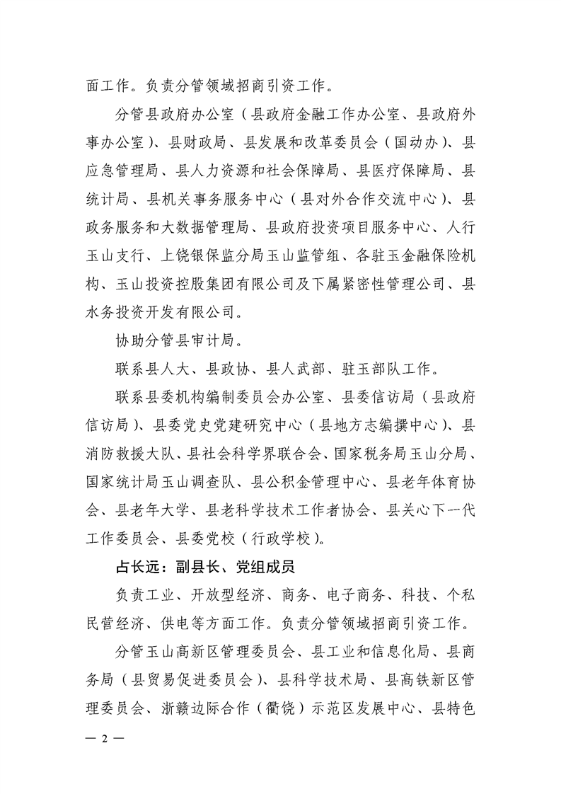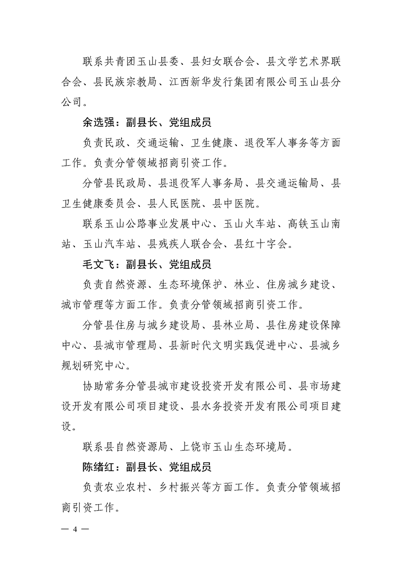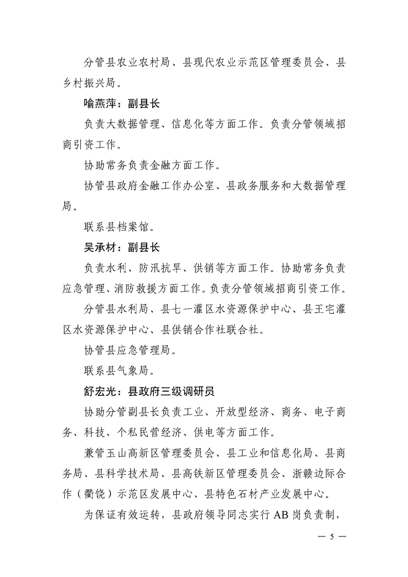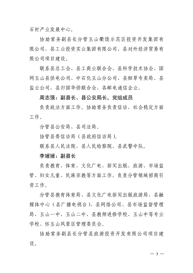 玉山縣人民政府關于調整縣政府領導分工的通知