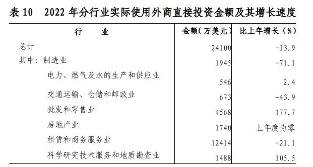 全年全市新批外商投資企業54個,實際使用外商直接投資2.41億美元,比上年下降1.77%。利用省外2000萬元以上項目實際進資1050.91億元,增長9.53%。對外直接投資額7.70億美元,增長128.47%。