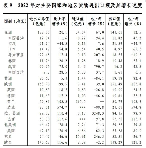 全年全市貨物進出口總額497.6億元,比上年增長56.2%。其中,出口441.8億元,增長58.3%;進口55.8億元,增長41.3%。分貿易方式看,一般貿易出口410.6億元,增長79.7%;加工貿易出口30.1億元,下降40.4%。分重點商品看,機電產品出口325.7億元,增長75.4%;高新技術產品出口256.8億元,增長66.4%;服裝及衣著附件出口14.9億元,增長25.8%。