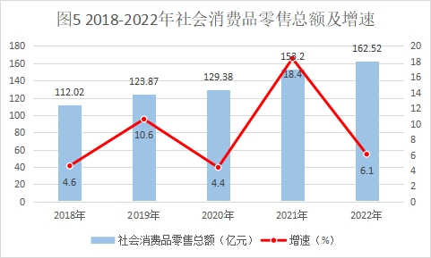 2022年,全縣消費(fèi)品市場(chǎng)總體延續(xù)穩(wěn)中有進(jìn)、持續(xù)增長(zhǎng)的發(fā)展態(tài)勢(shì),全縣實(shí)現(xiàn)社會(huì)消費(fèi)品零售總額162.52億元,同比增長(zhǎng)6.1%,增幅分別高于全省、全市平均水平0.8個(gè)百分點(diǎn)和0.2個(gè)百分點(diǎn),列全市第3,限額以上消費(fèi)品零售額完成37.01億元,同比增長(zhǎng)29.1%,列全市第3。